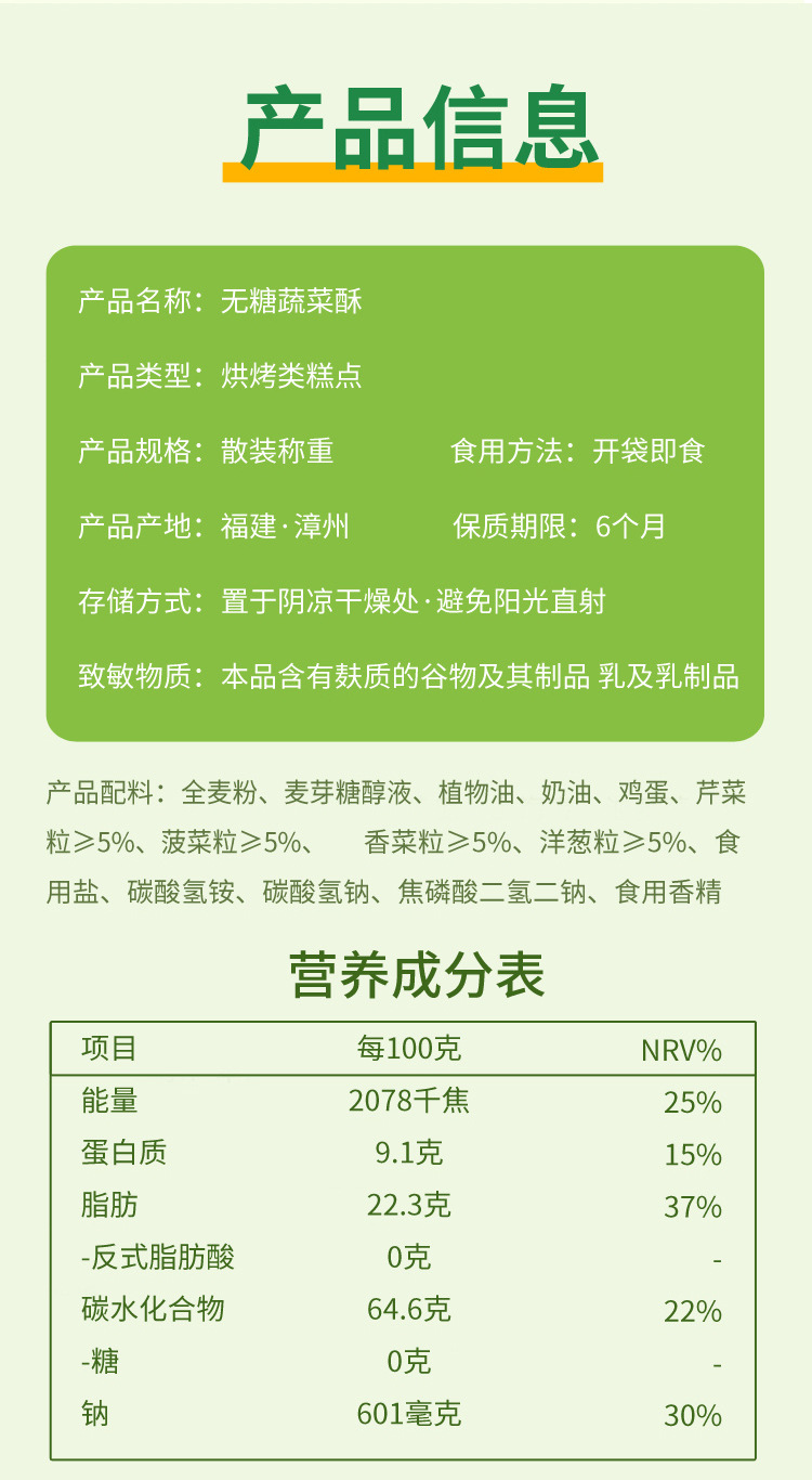 商品名称:盛谷夫 无糖蔬菜酥30包/200g 6943506810815 特殊地区加运费