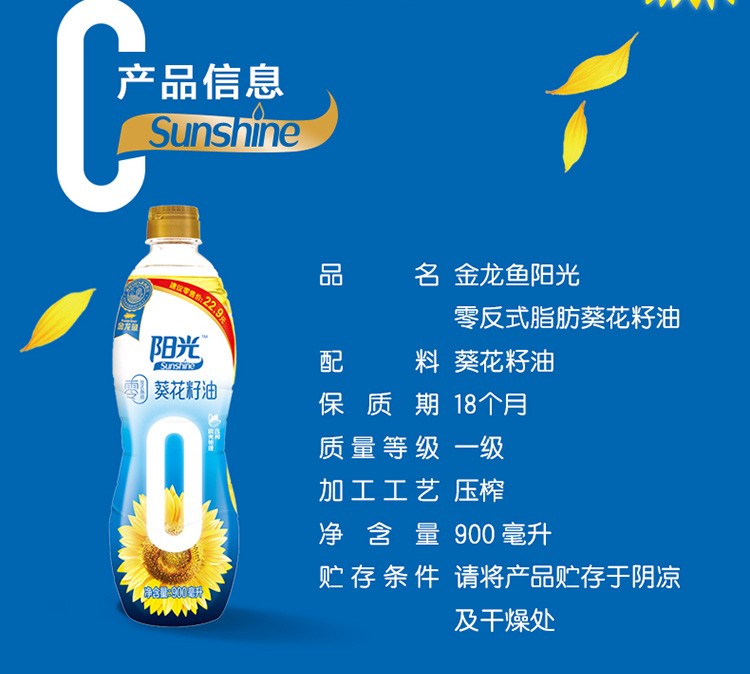 商品名称:金龙鱼阳光零反式脂肪葵花籽油 900ML食用油 900ML