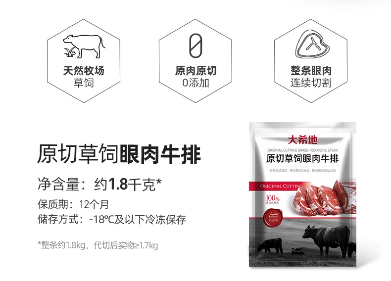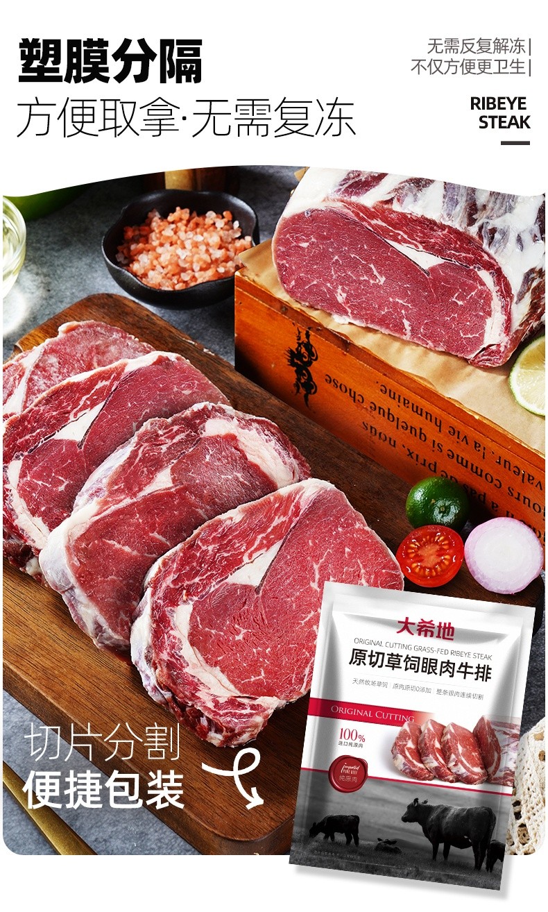 大希地香草黑胡椒草饲眼肉牛排130g(贴肤装)