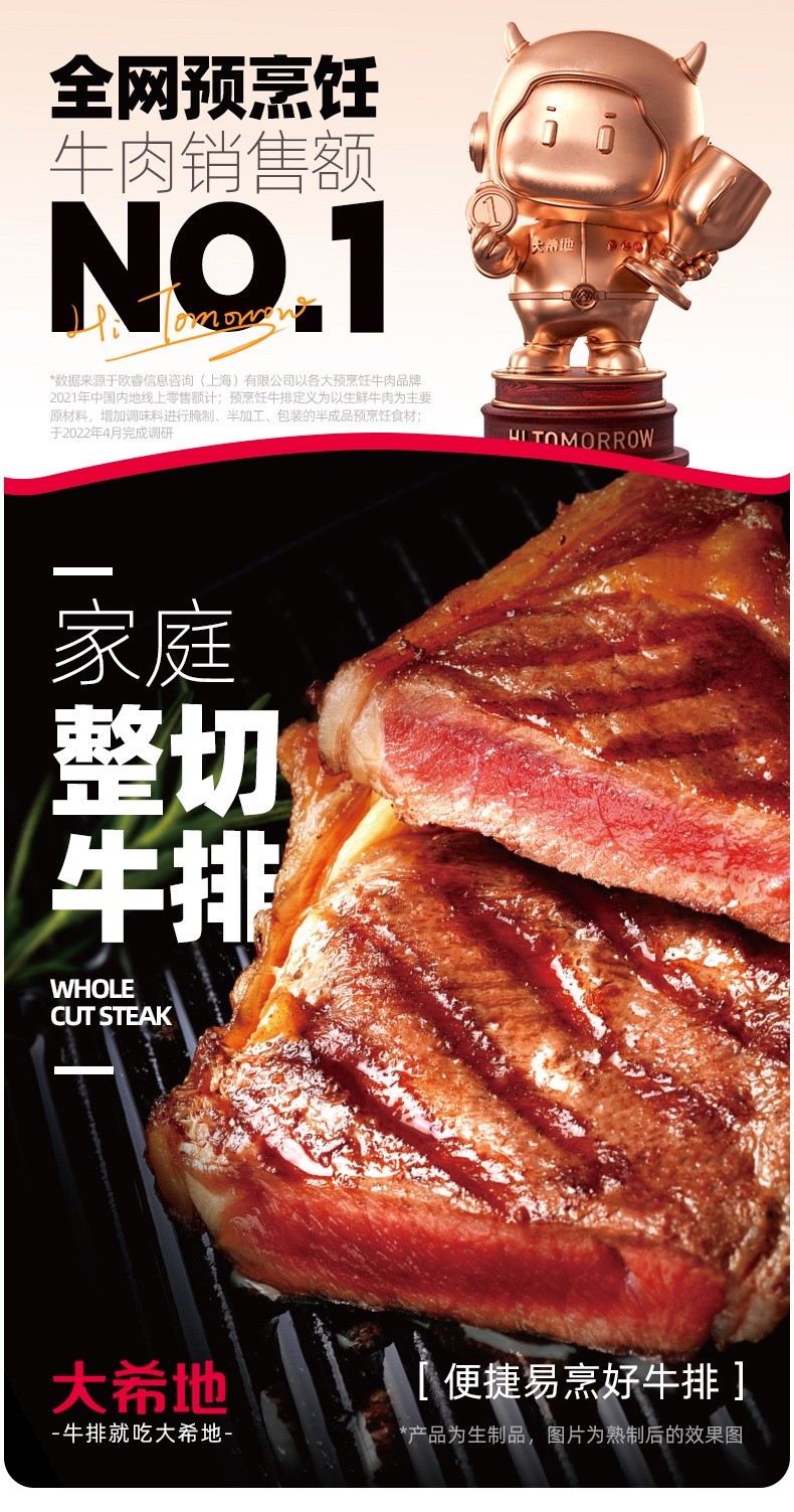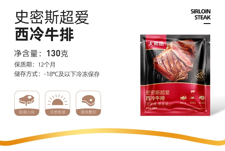 大希地 香草黑胡椒草饲牡蛎牛排150g贴肤装(2片)