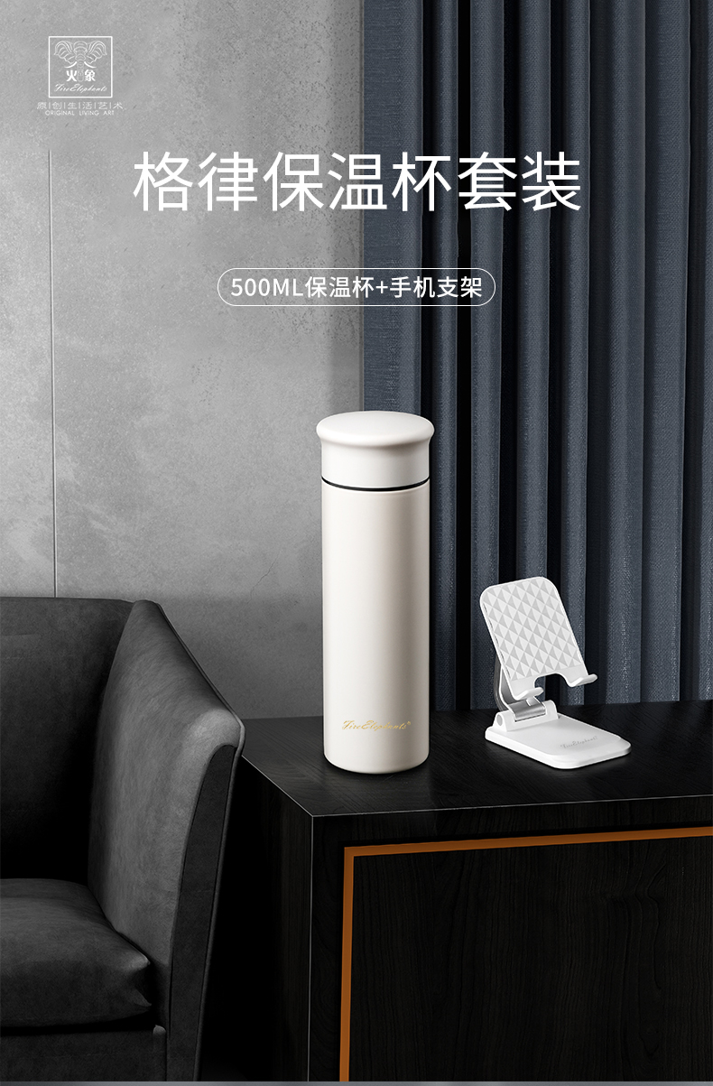 火象 格律保温杯套装(500ml保温杯+手机支架 )白色 HXB-YZ006 6970606138152 偏远地区不发货