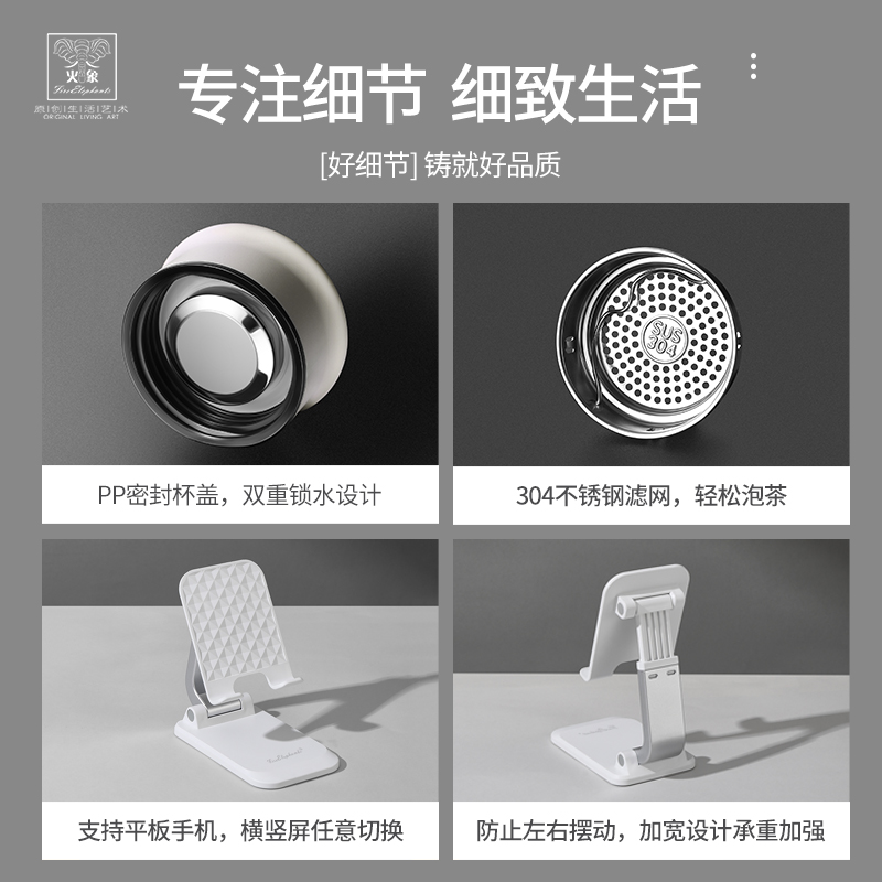 商品名称:火象 格律保温杯套装(500ml保温杯+手机支架 )白色 HXB-YZ006 6970606138152 偏远地区不发货