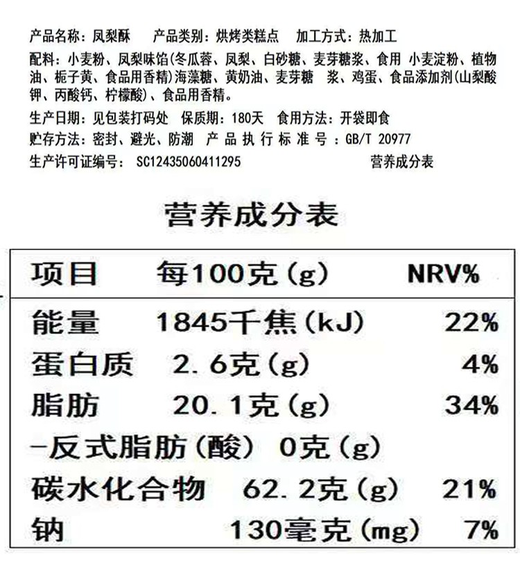 商品名称:鑫鹭台湾凤梨酥传统点心美味酸甜果香16包/267g 6935060411295 特殊地区加运费免邮
