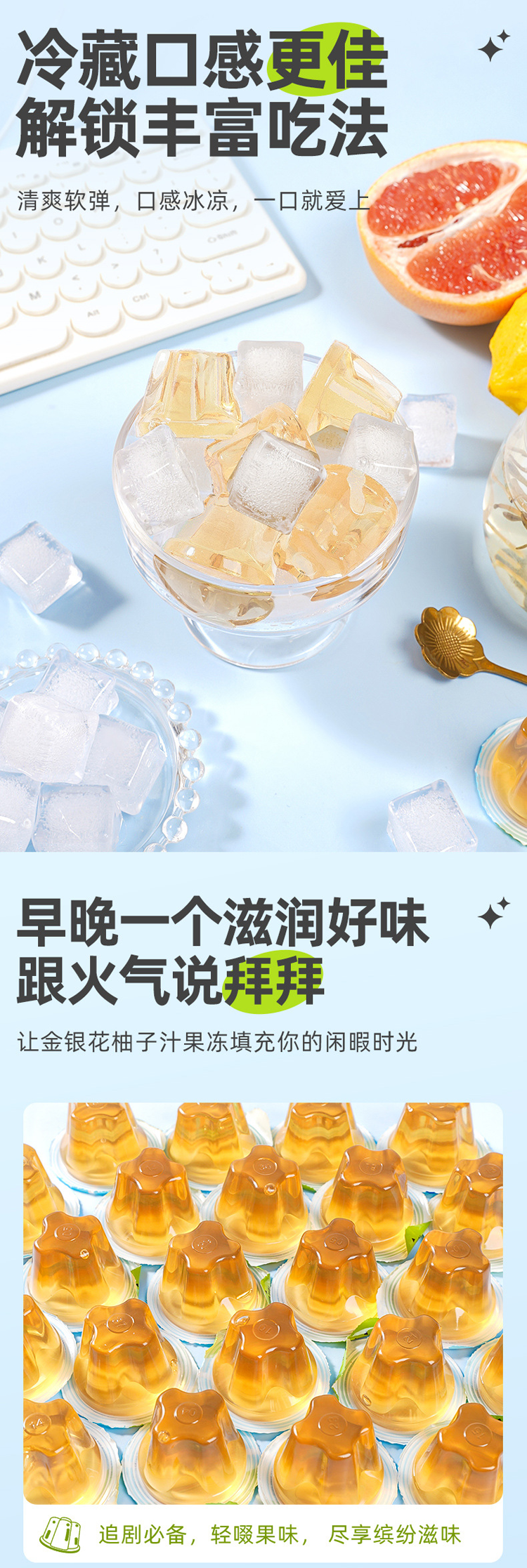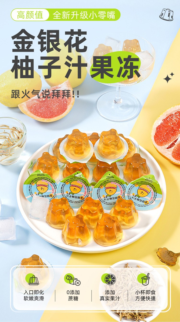 Q大酥金银花柚子汁果冻0脂肪0添加蔗糖30个/520g 6935001113459 特殊地区加运费