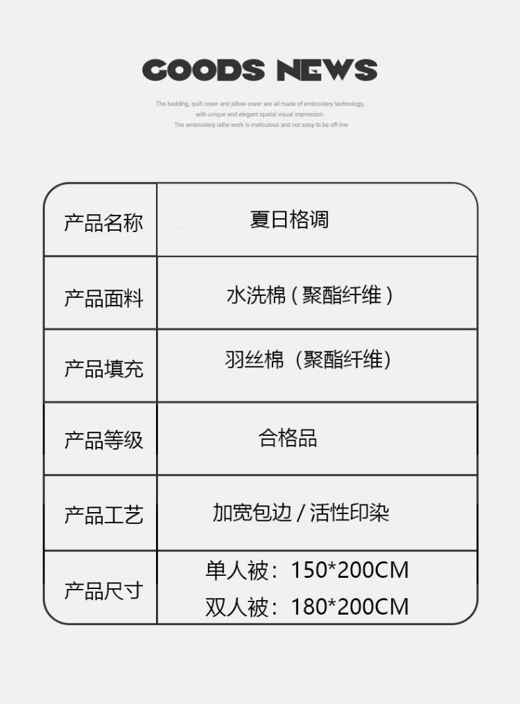 商品名称:啄木鸟 夏凉被-夏日格调(大)ZMN-GDXB-02(180*200CM)6975502030029