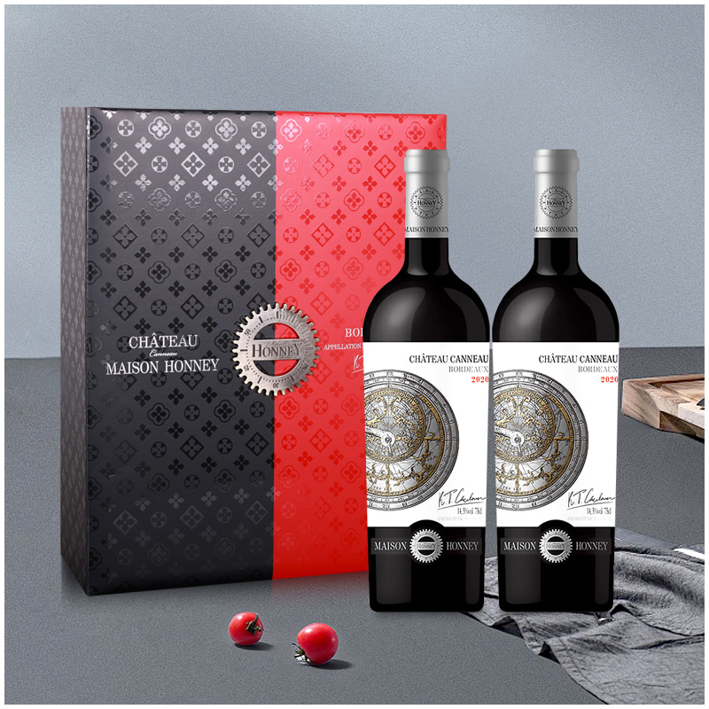 商品名称:J-《热评500+》霍邑世家 卡侬干红葡萄酒 法国原瓶原装进口 波尔多法定产区 14.5度红葡萄酒 红酒 750ml/瓶 双支礼盒装 每提附赠手提袋