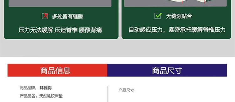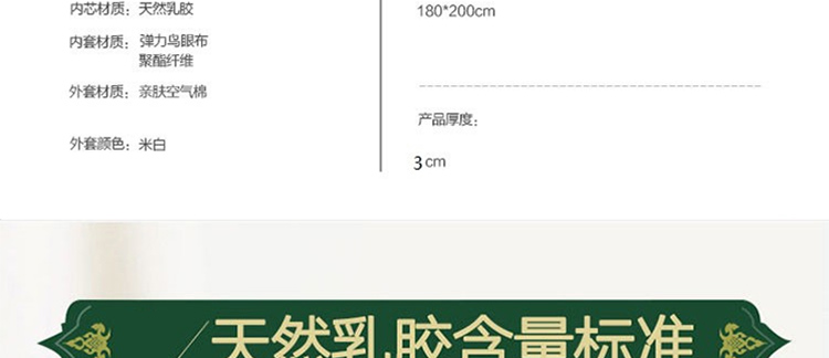 商品名称:J-拜雅得 天然乳胶床垫180*200*3cm 平面乳胶床垫褥子