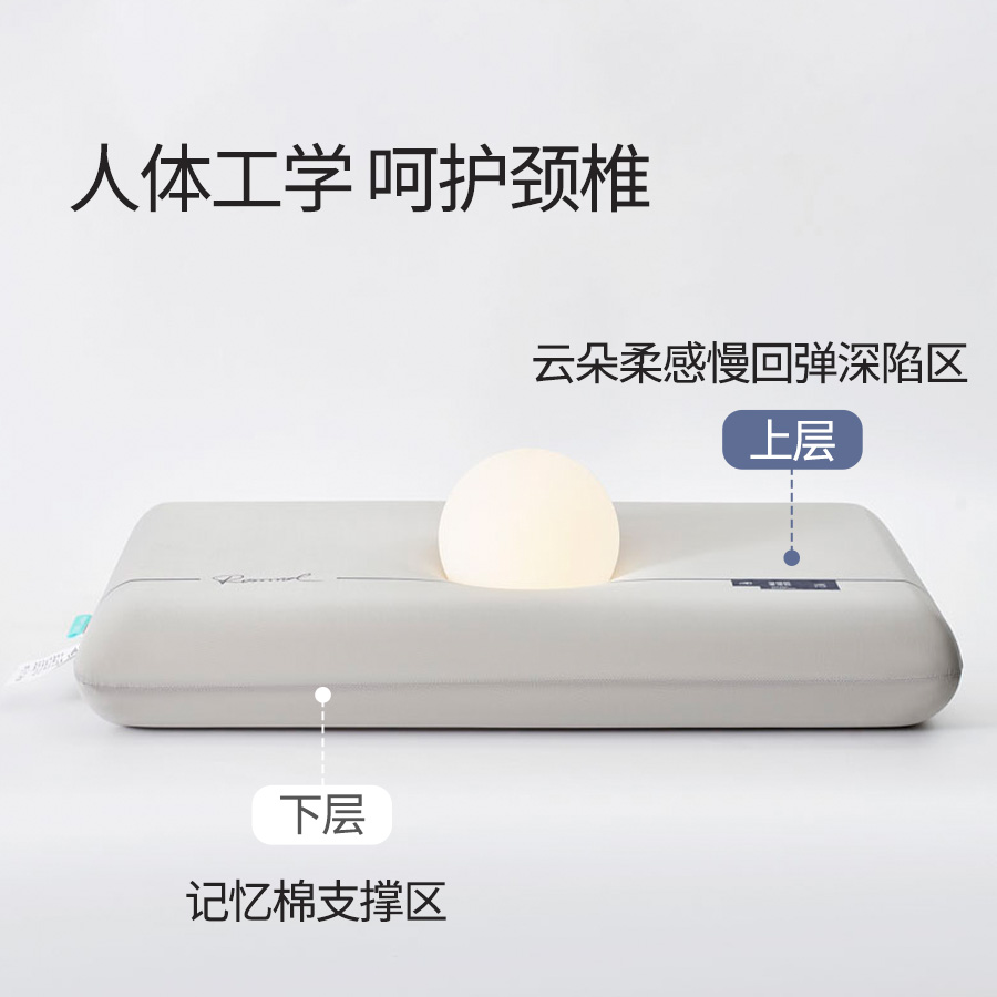 商品名称:J-【热评200+】罗曼罗兰零压云朵记忆枕 护颈慢回弹枕头 记忆绵聚氨酯 云柔睡感 加大枕面 灰色70*42*10cm 零压力助力睡眠