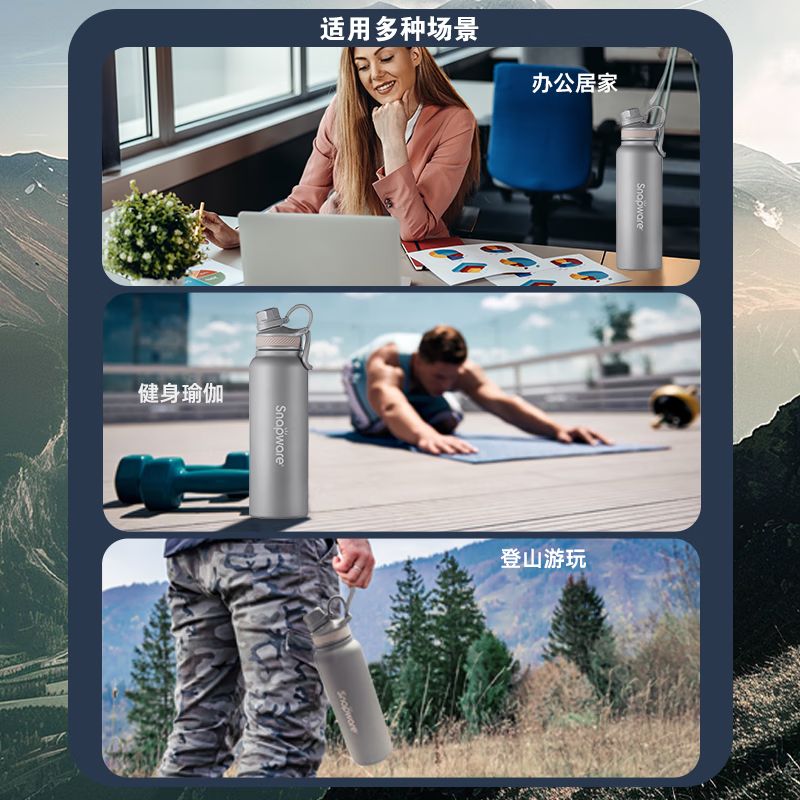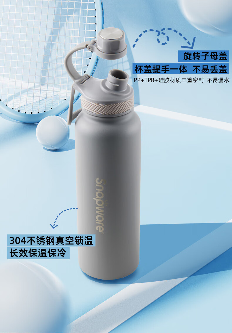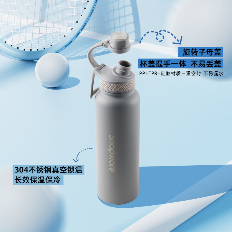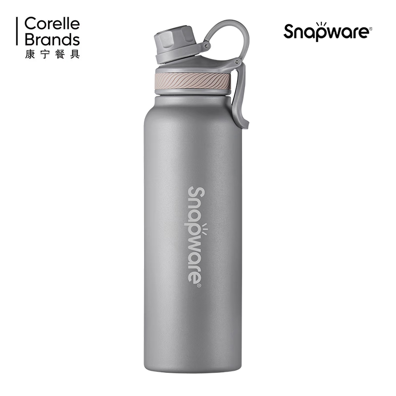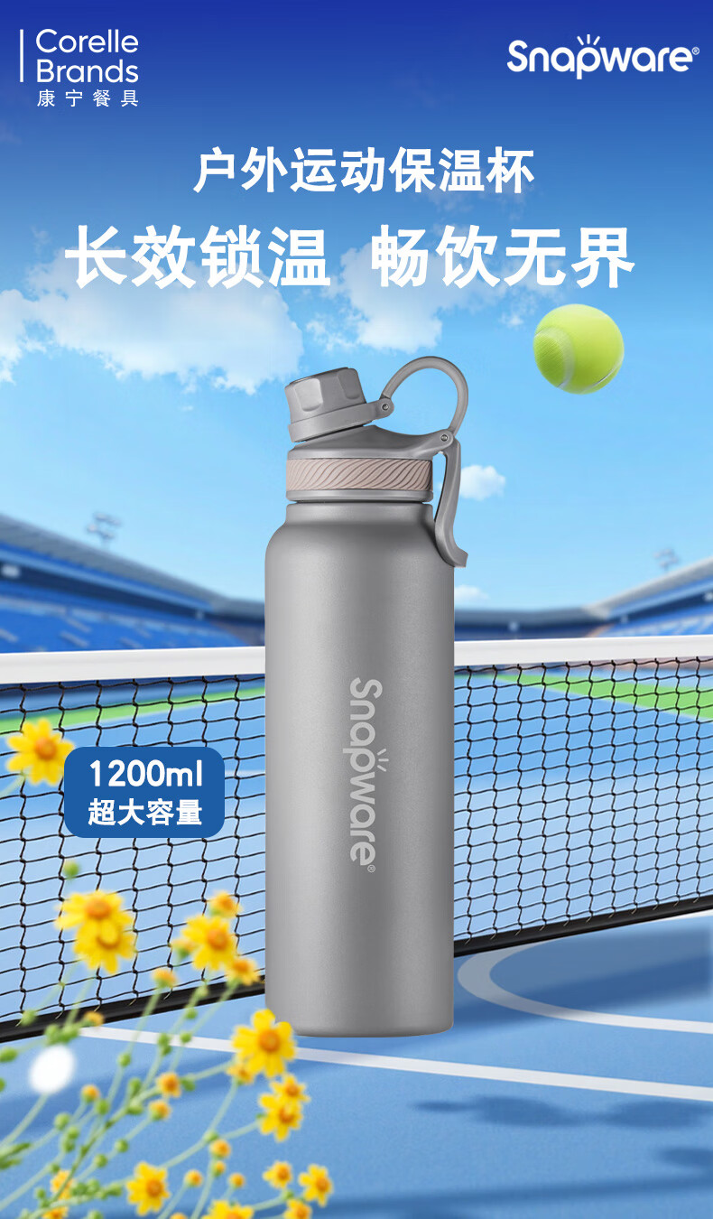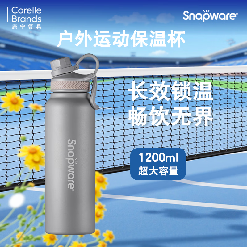 J-康宁 SNAPWARE 网红款大容量保温杯 学生上学专用户外运动车载水杯子 时尚便携 健身骑行水壶 不锈钢运动保温壶1200ml 灰色 SN-STB-1200-G/CN 精美彩盒装 企业随手...