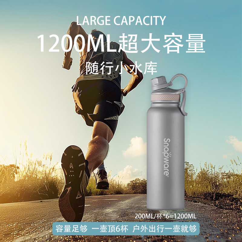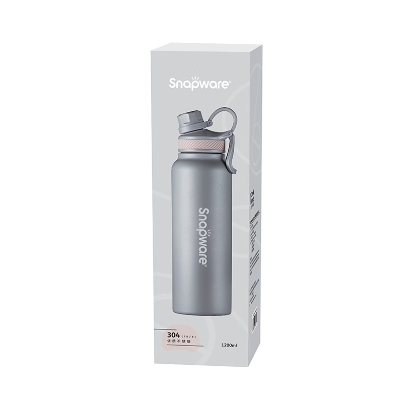 J-康宁 SNAPWARE 网红款大容量保温杯 学生上学专用户外运动车载水杯子 时尚便携 健身骑行水壶 不锈钢运动保温壶1200ml 灰色 SN-STB-1200-G/CN 精美彩盒装 企业随手礼 节日好礼 父亲节礼物