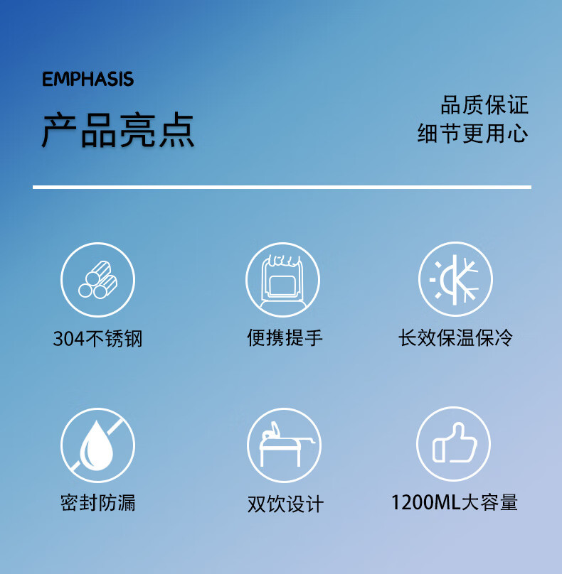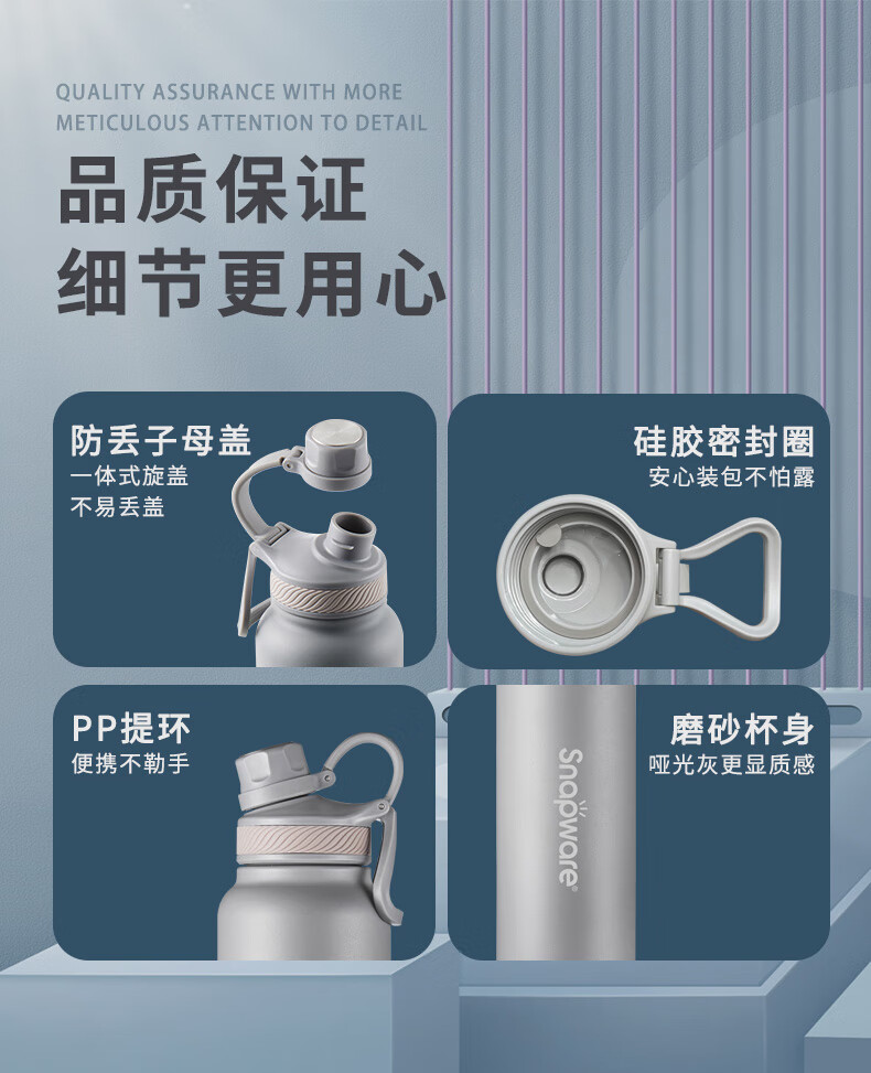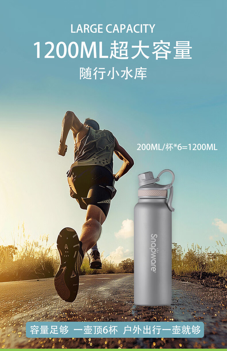 商品名称:J-康宁 SNAPWARE 网红款大容量保温杯 学生上学专用户外运动车载水杯子 时尚便携 健身骑行水壶 不锈钢运动保温壶1200ml 灰色 SN-STB-1200-G/CN 精美彩盒装 企业随手礼 节日好礼 父亲节礼物