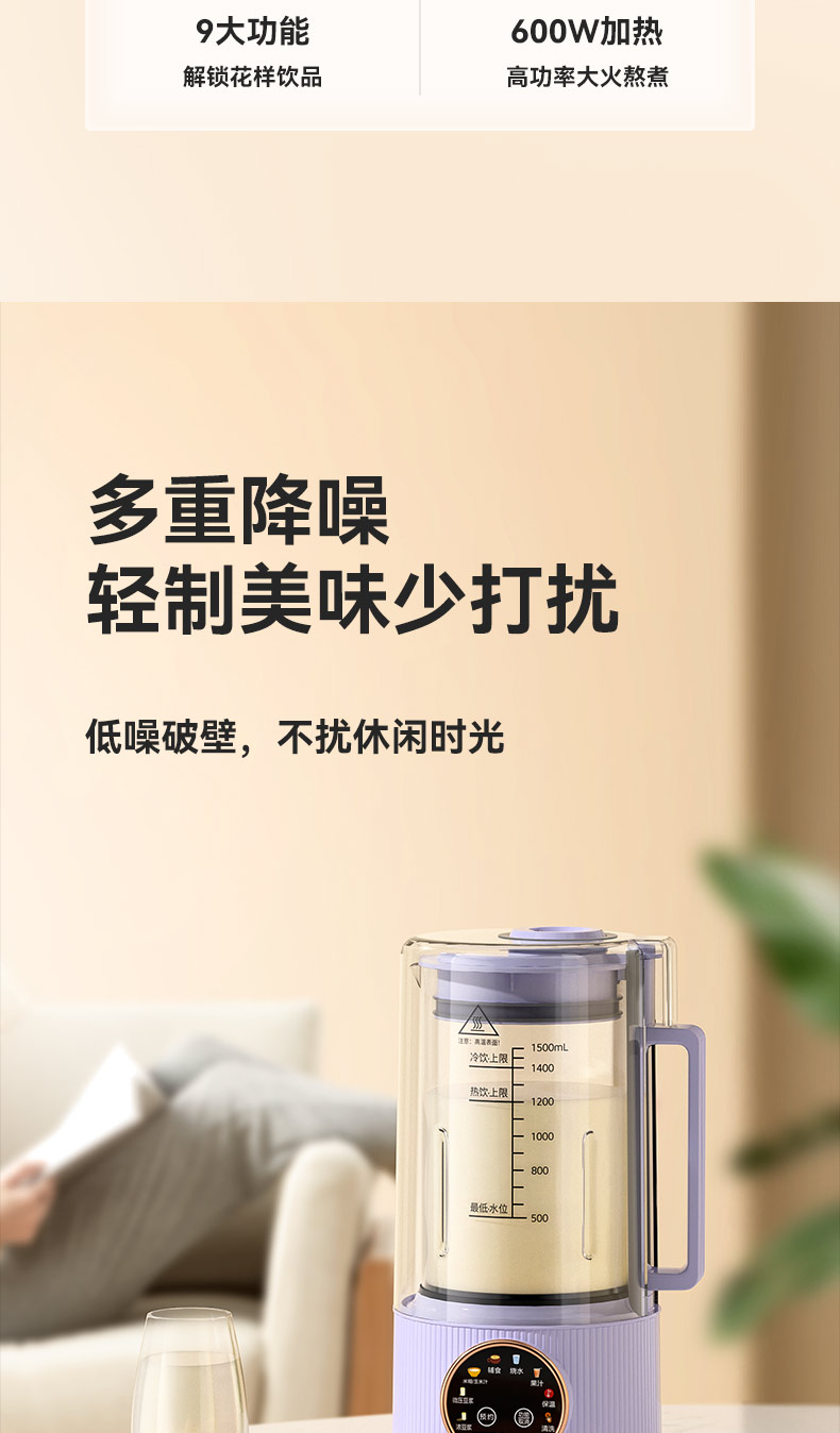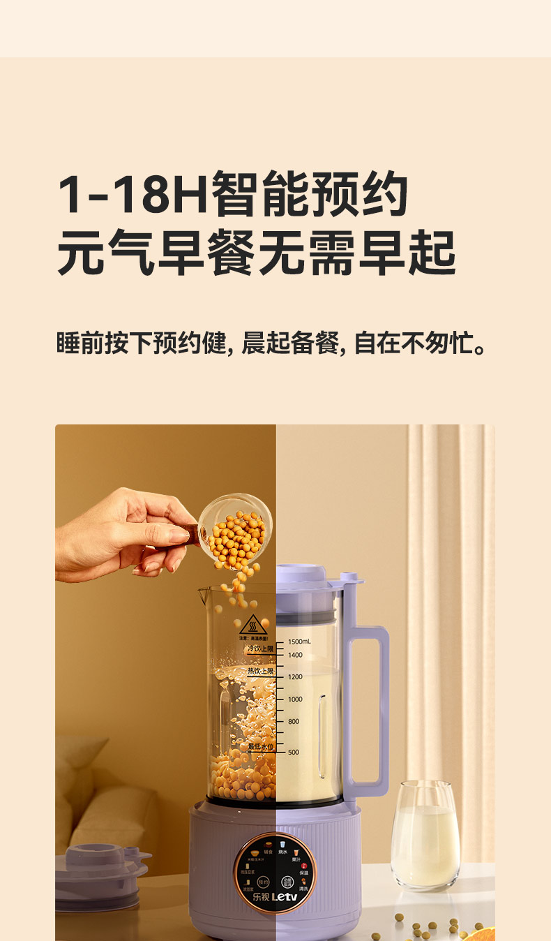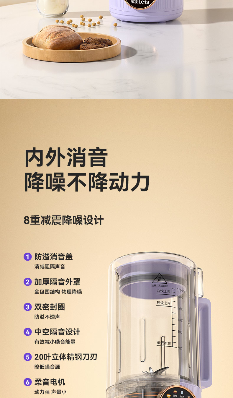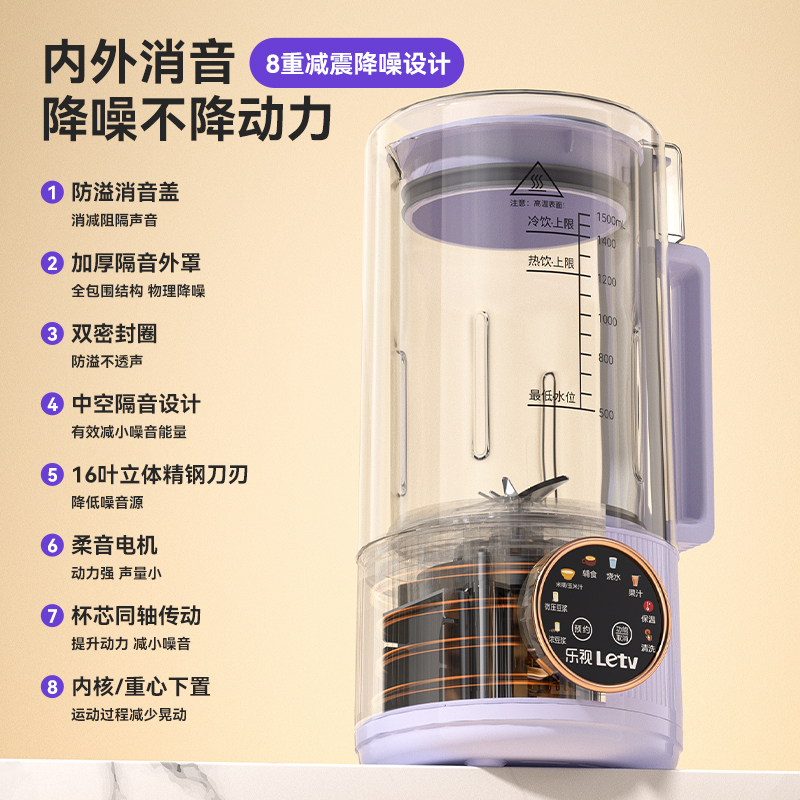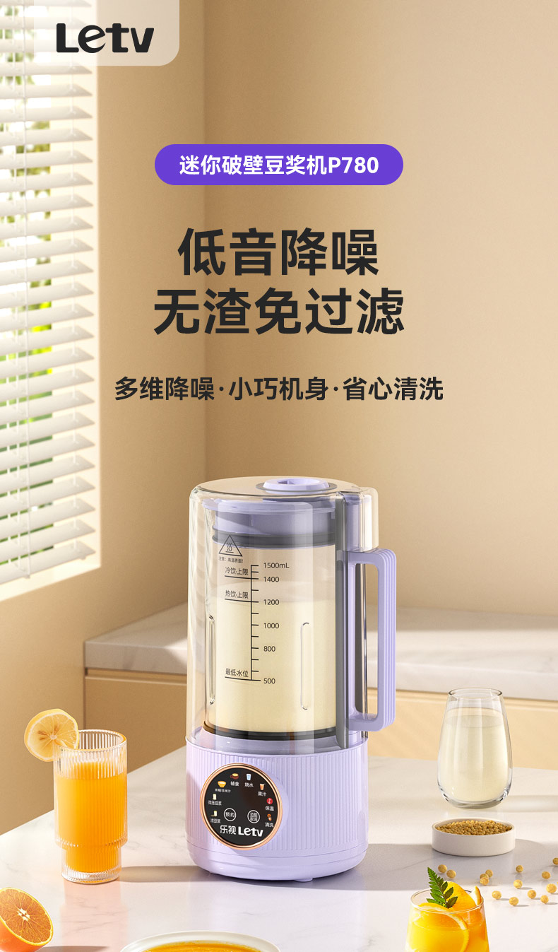 J-乐视Letv迷你轻音全自动破壁豆浆机P780 小型家用免过滤多功能智能预约 低音降噪1.5L