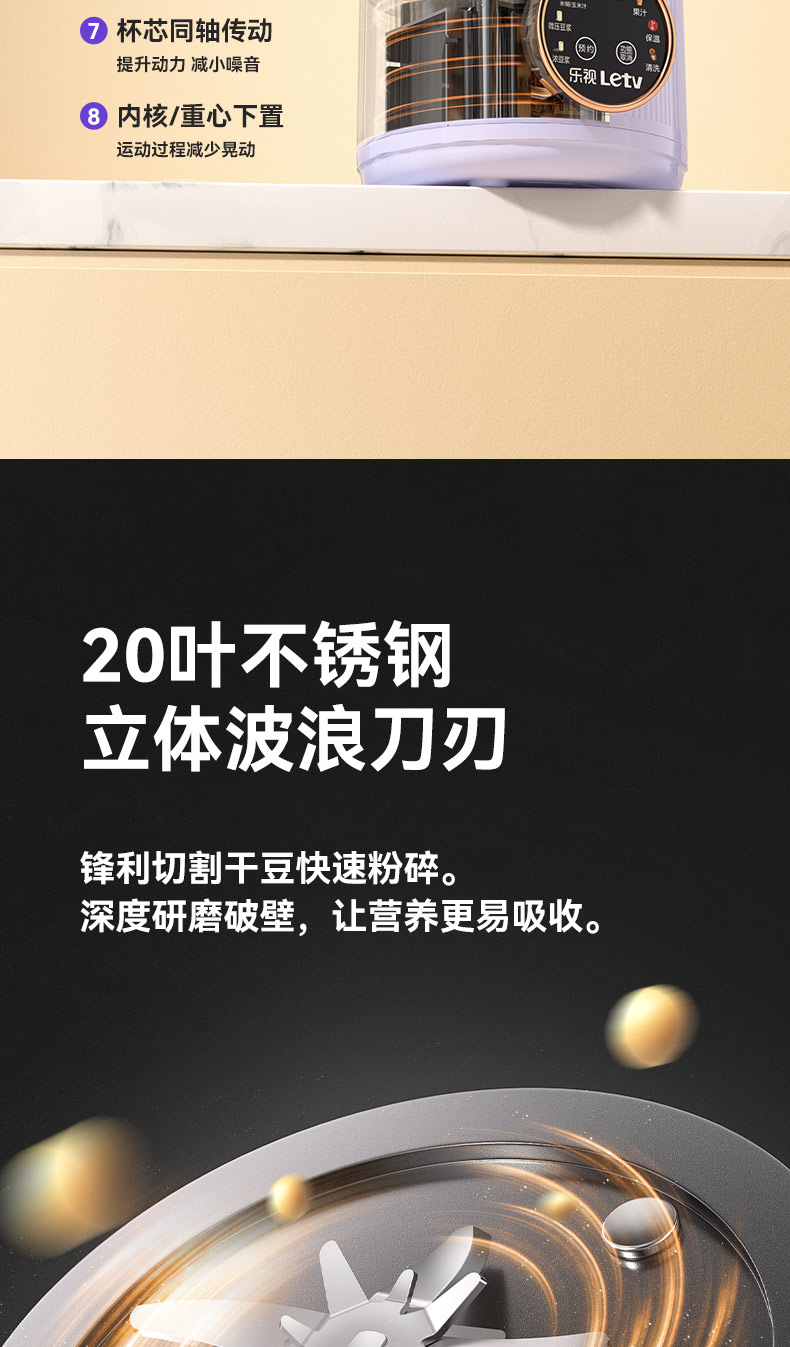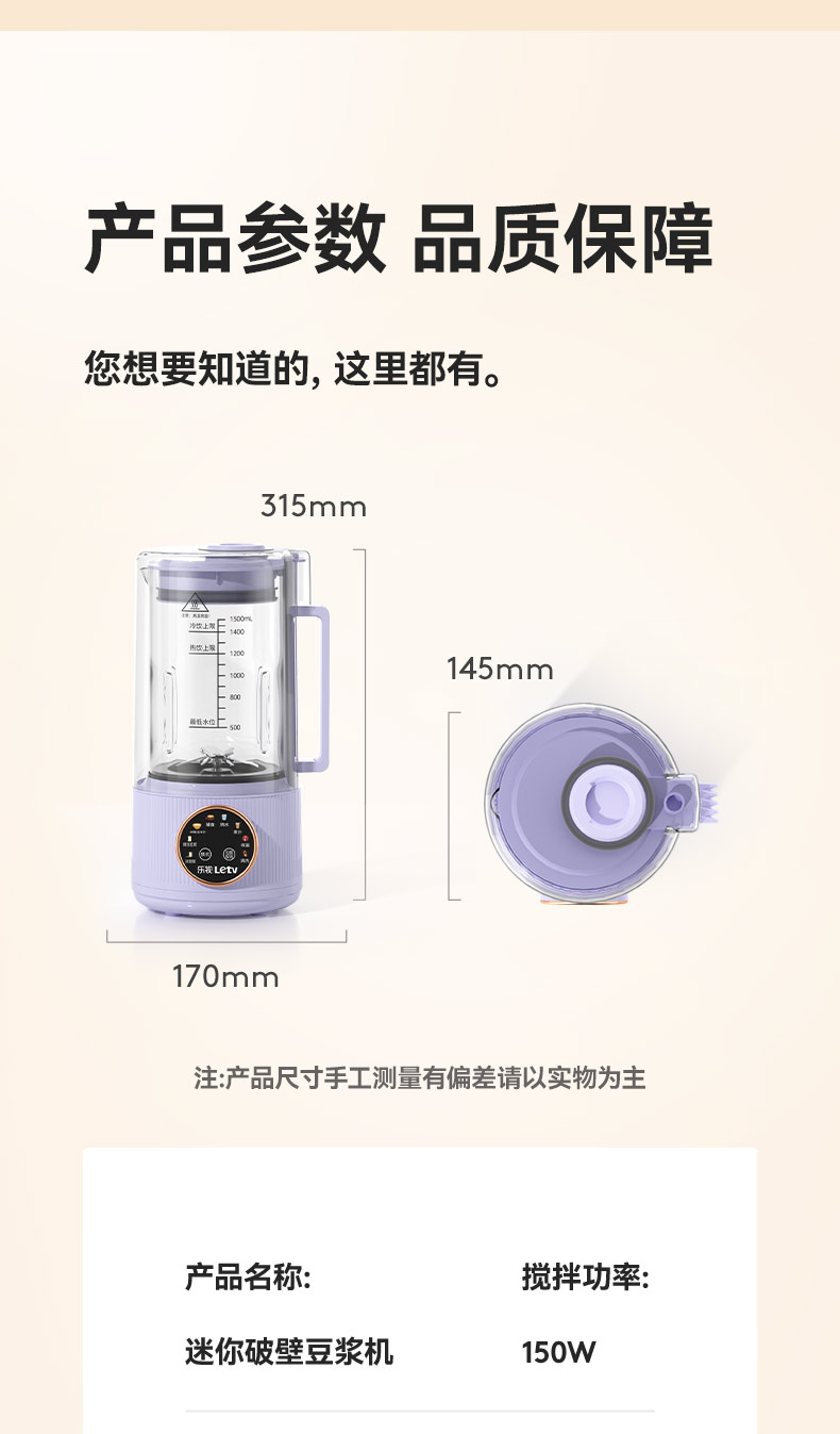 商品名称:J-乐视Letv迷你轻音全自动破壁豆浆机P780 小型家用免过滤多功能智能预约 低音降噪1.5L