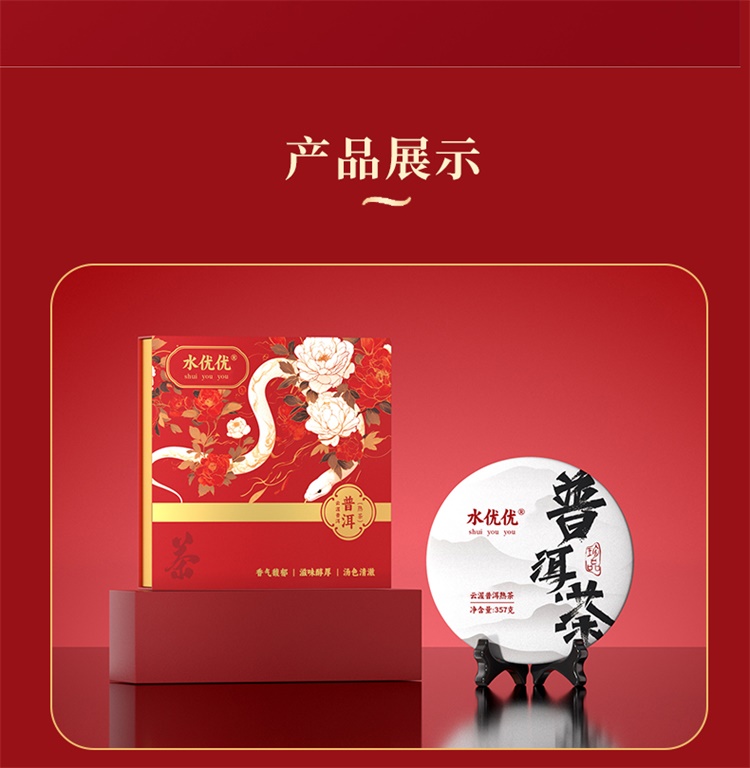 商品名称:J-水优优普洱茶熟茶357g 礼盒+手提袋 茶饼送礼首选佳品精美手提茶叶礼盒装 企业福利