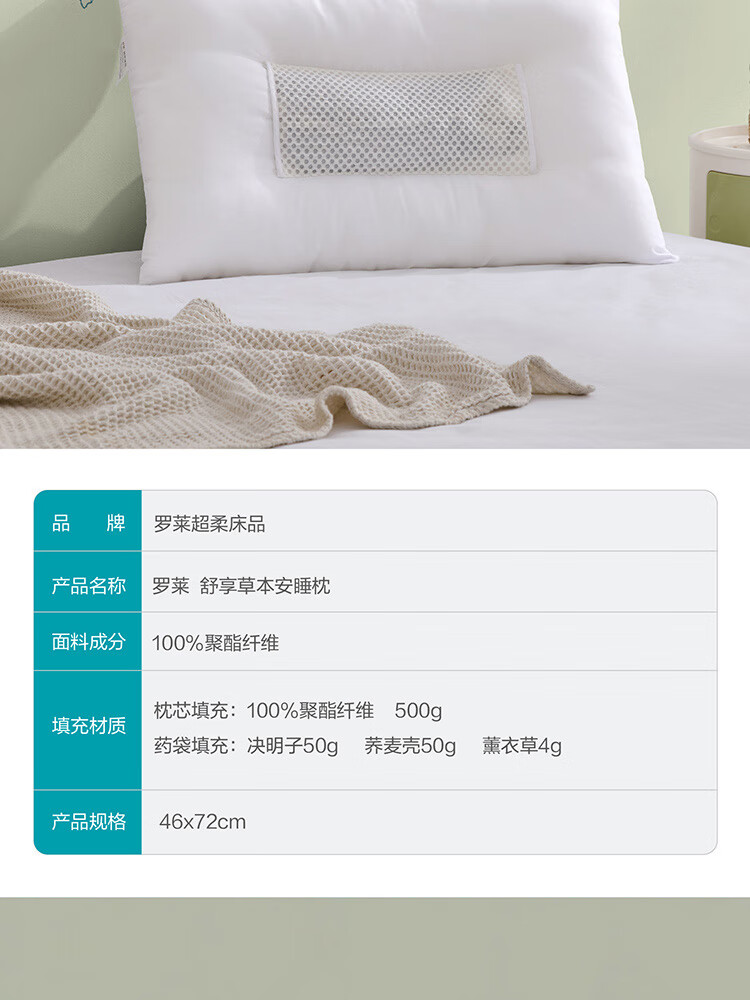 商品名称:J-罗莱 草本枕TG荞麦恋芯决明子薰衣草荞麦枕舒享安睡单枕枕芯 舒享三味草本纤柔枕
