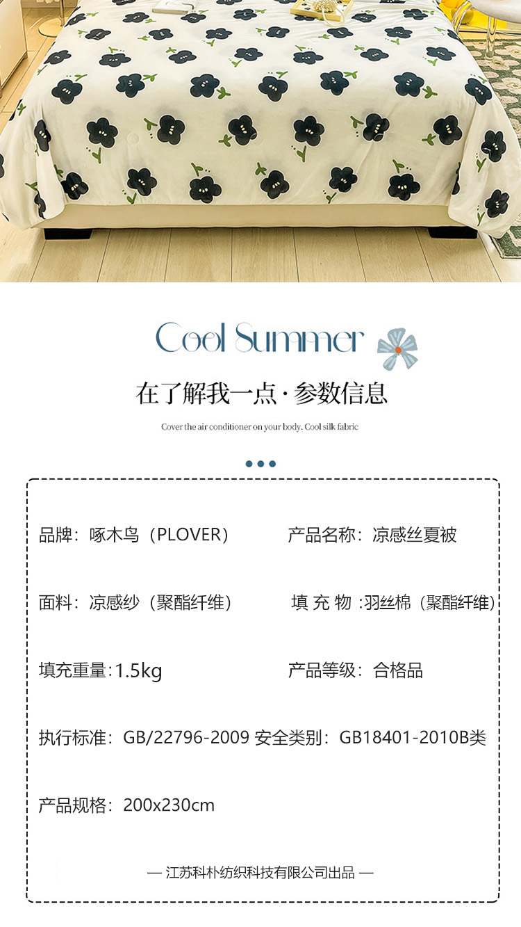 商品名称:啄木鸟(PLOVER)夏凉被-凉感丝夏被-花枝ZMN-XB-05(200*230CM)6975502031170