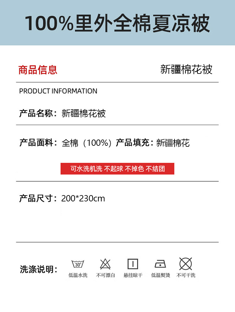 商品名称:啄木鸟(PLOVER)夏凉被-新疆棉花被-安德里亚ZMN-XB012(200*230CM)6975502033167