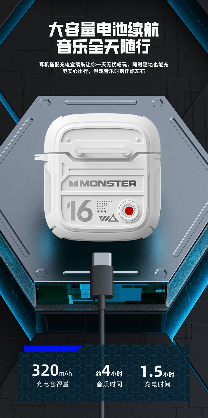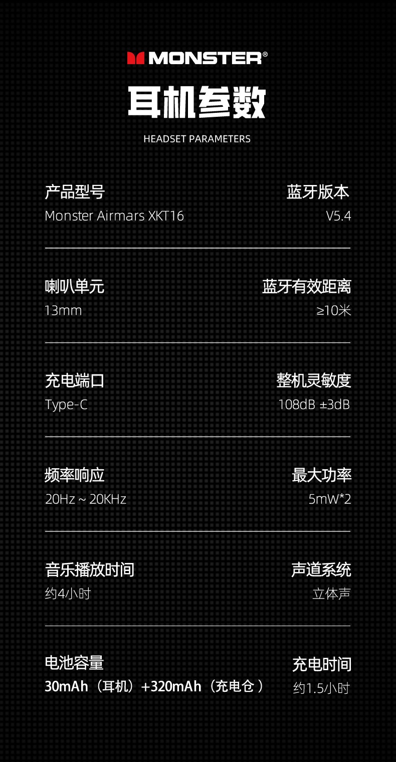 商品名称:魔声Monster Airmars 半入耳式真无线蓝牙耳机XKT16