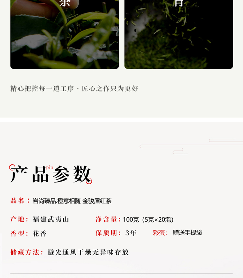 商品名称:J-岩尚臻品.大红袍/金骏眉 两种茶叶可选 100克 随手礼 茶叶礼盒 大红袍 100克