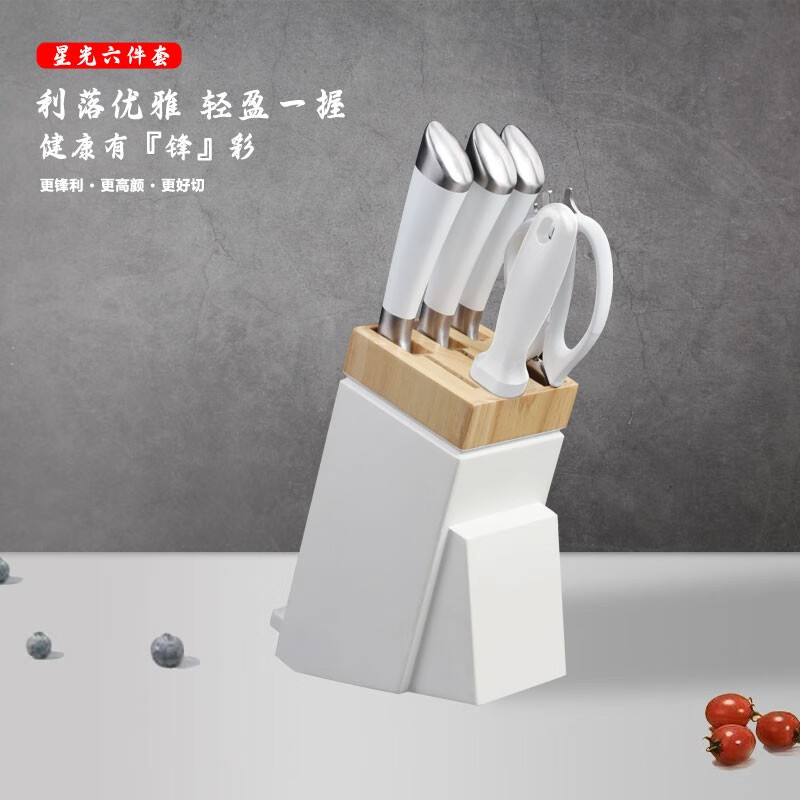 商品名称:盘师傅星光刀具六件套【切片刀·砍骨刀·厨师刀·鸡骨刀·磨刀棒·底座】PSF-580