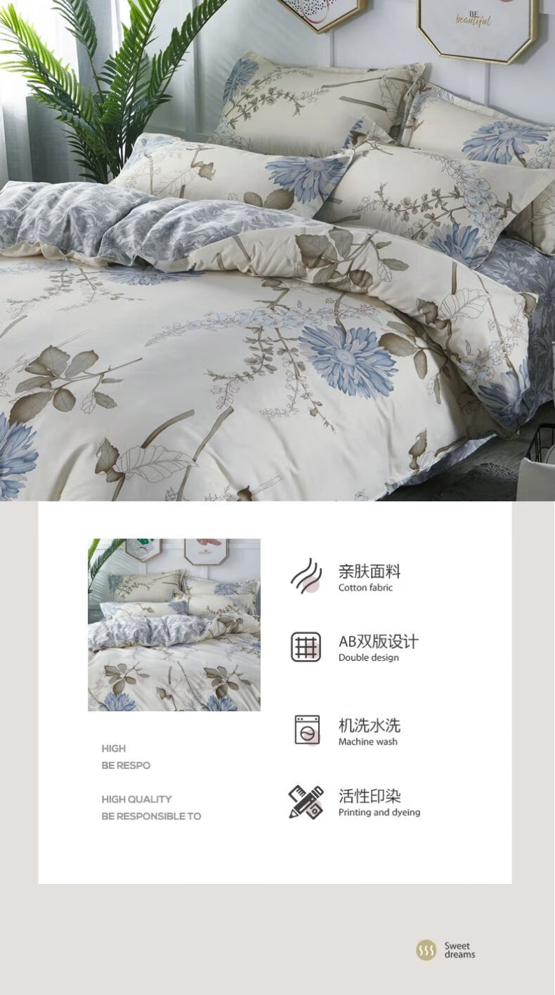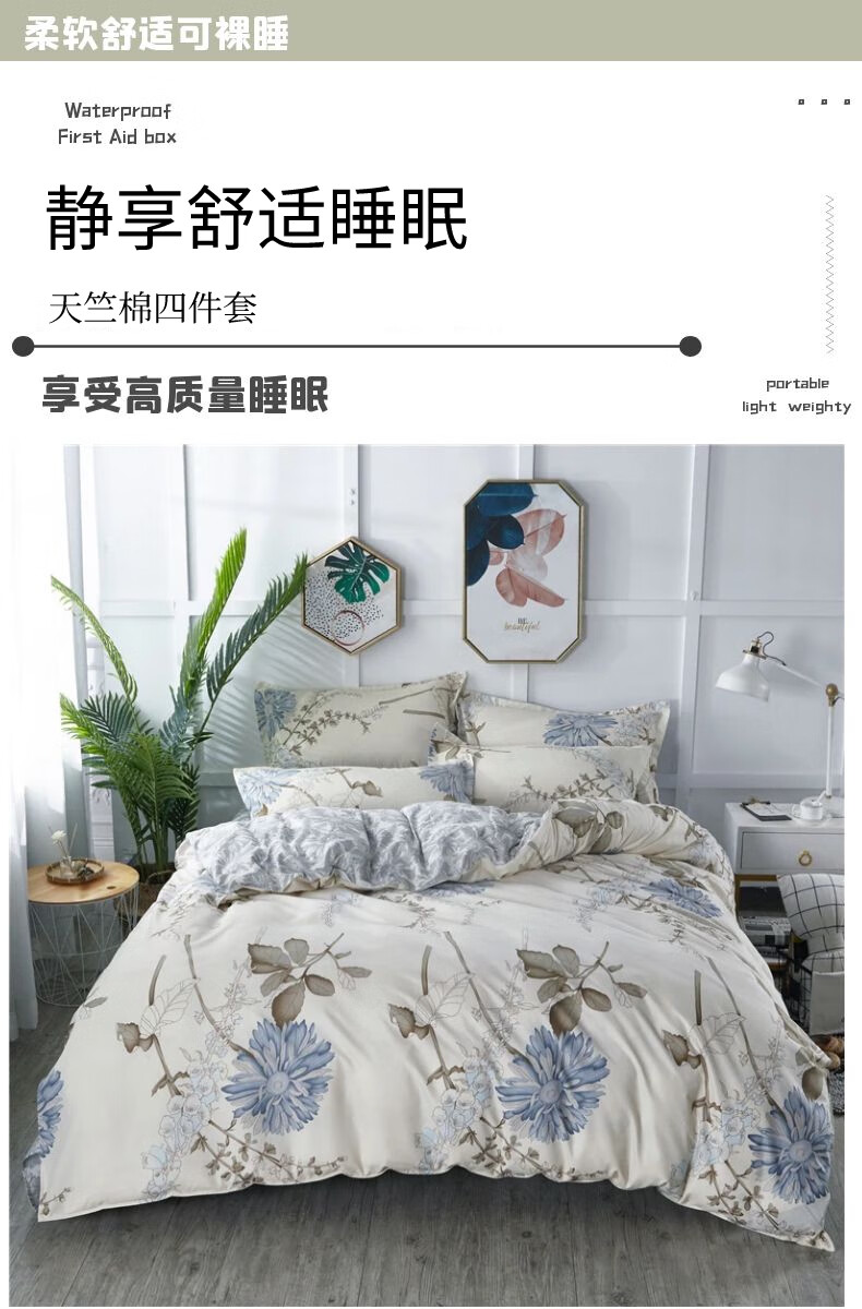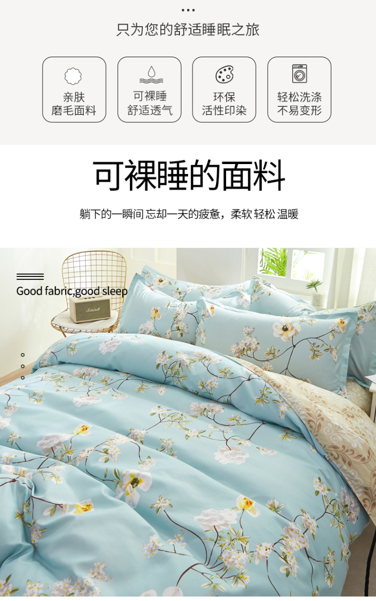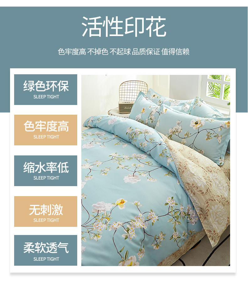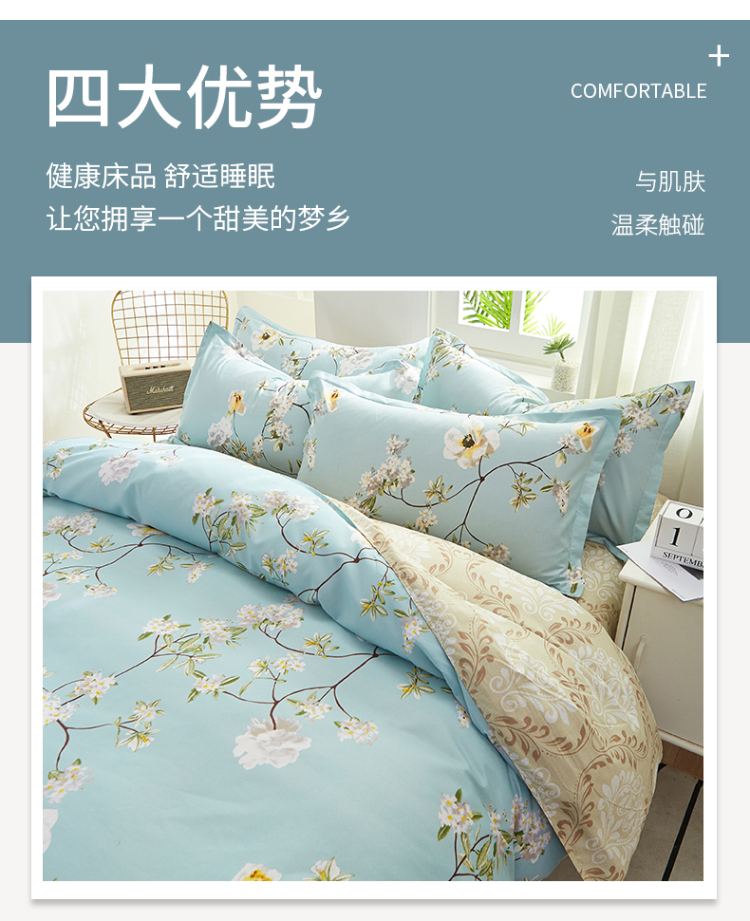 商品名称:J-【JD热评100+】优艺尚 天竺床上四件套 UT-2202 (100%聚酯纤维) 清风叶语 6976182013043