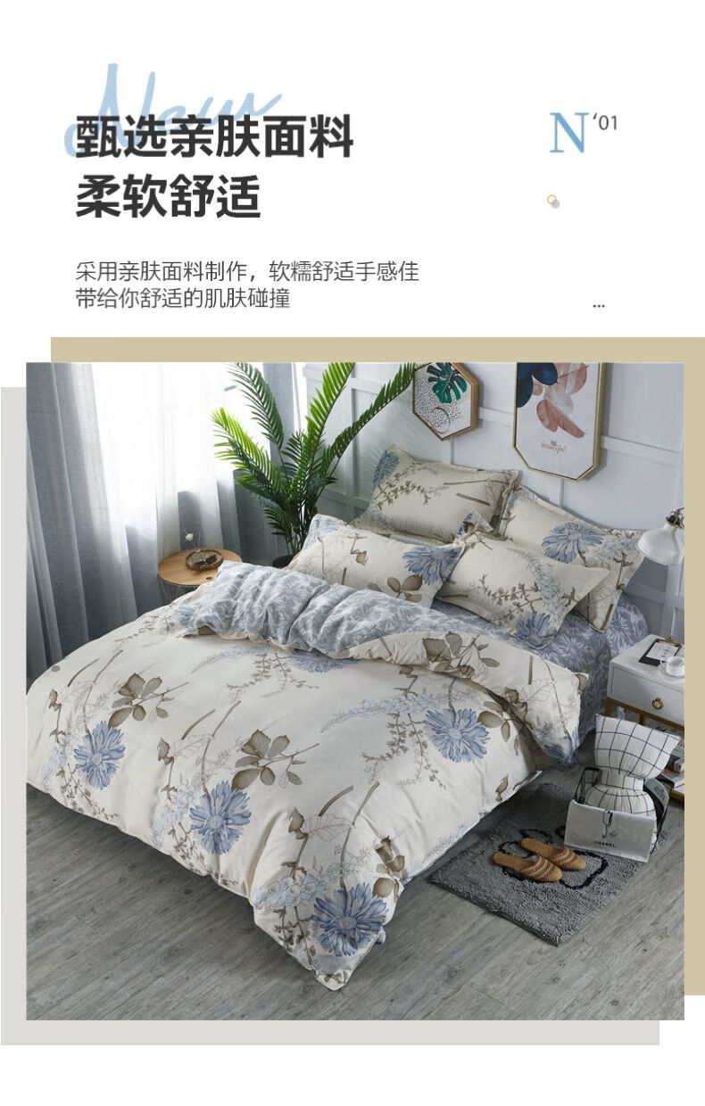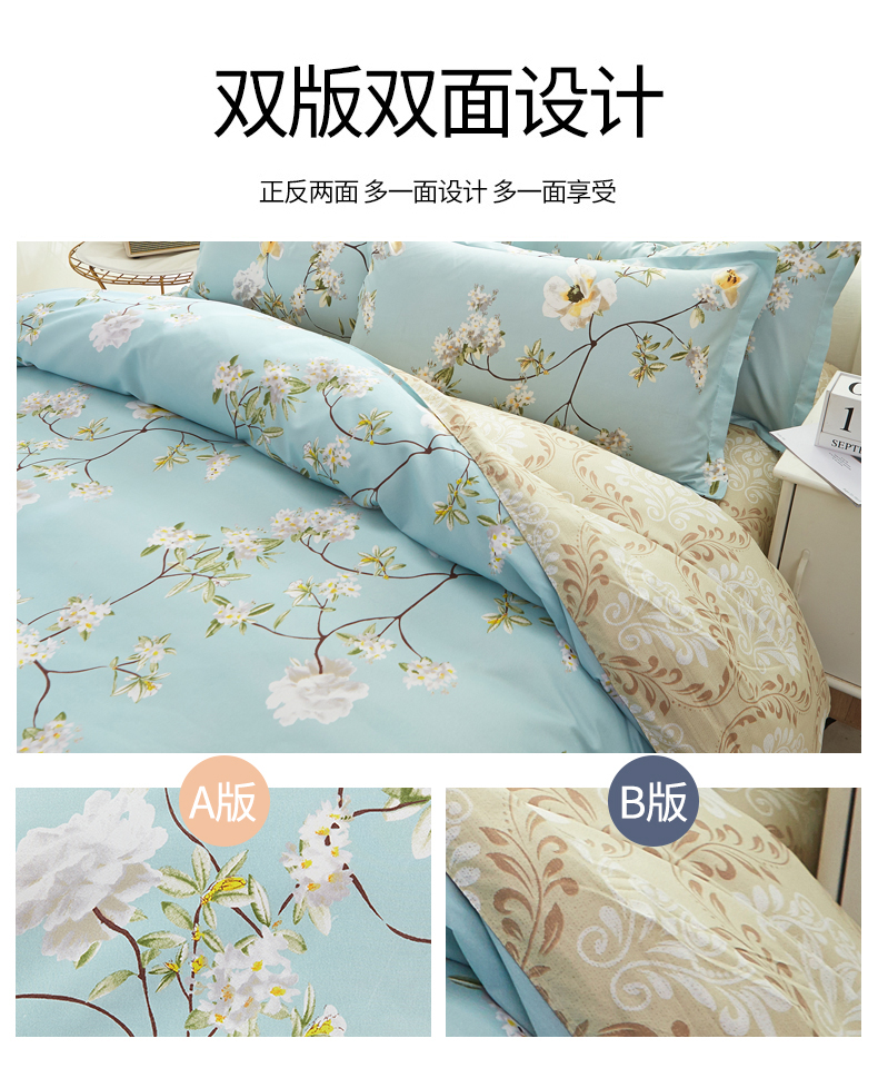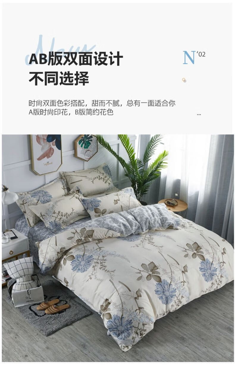 J-【JD热评100+】优艺尚 天竺床上四件套 UT-2202 (100%聚酯纤维) 清风叶语 6976182013043