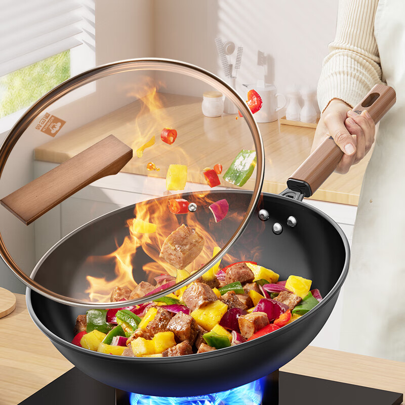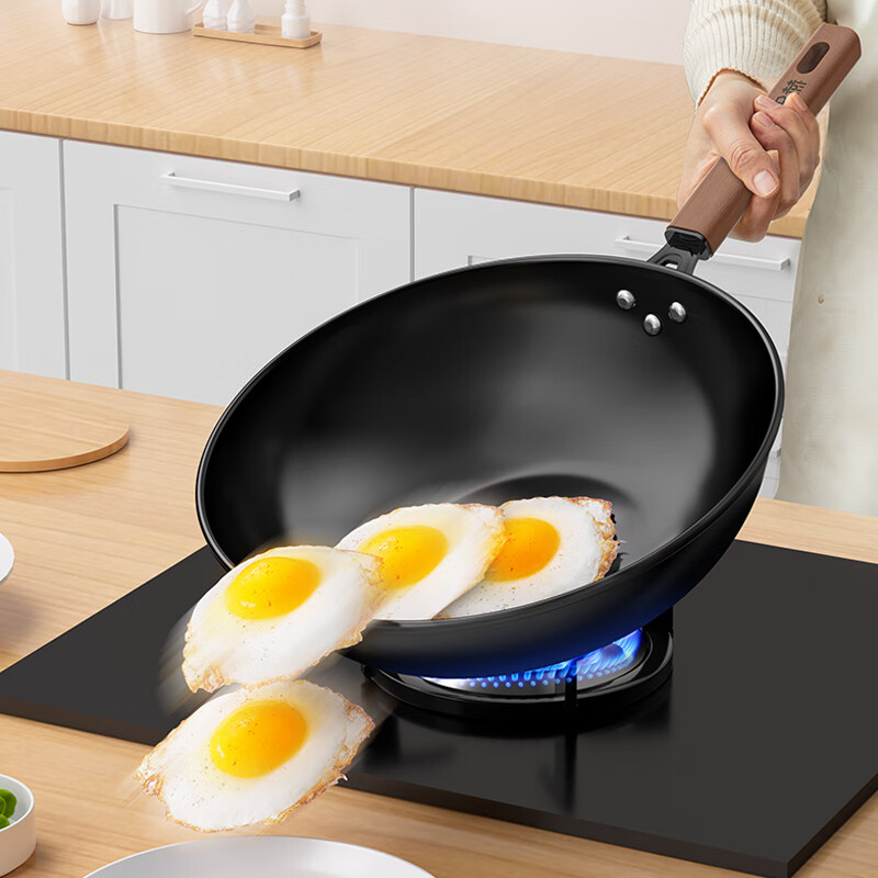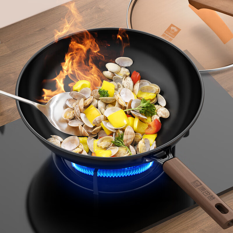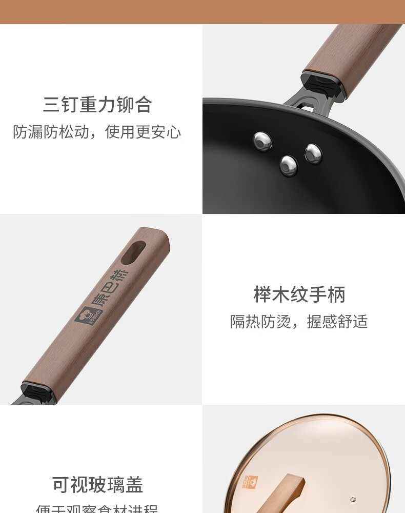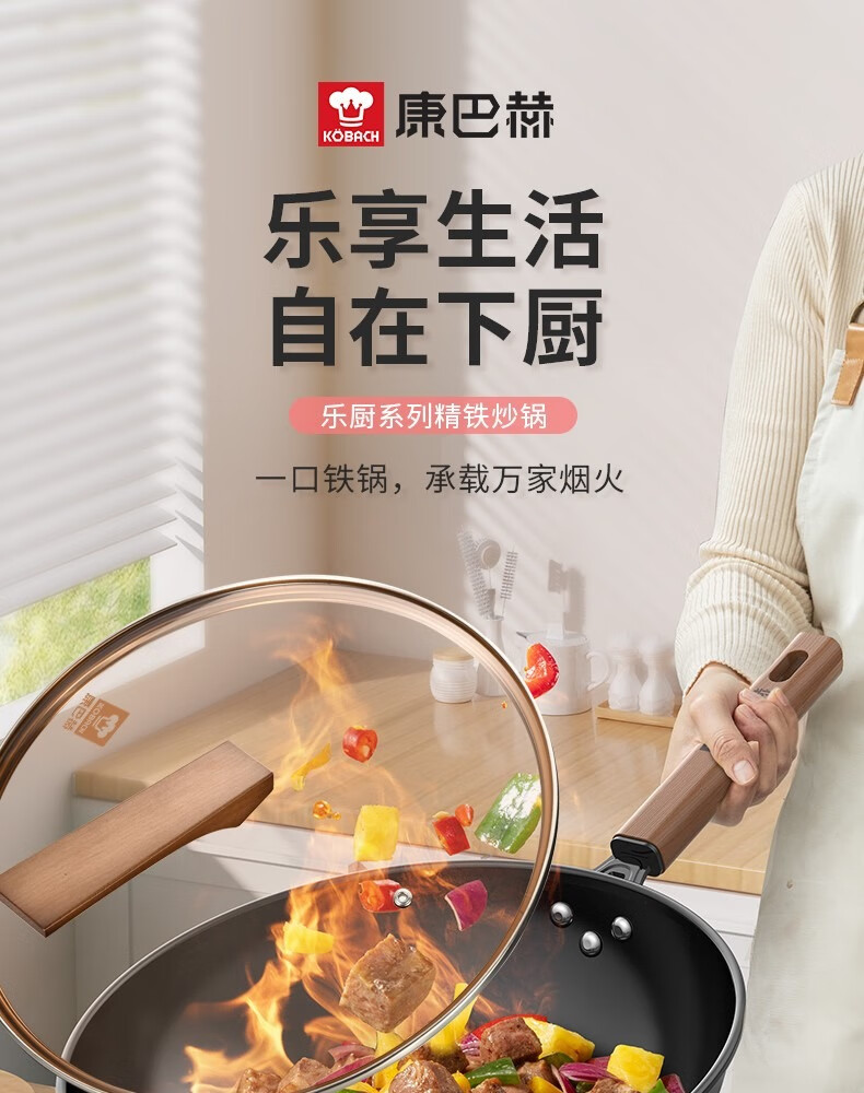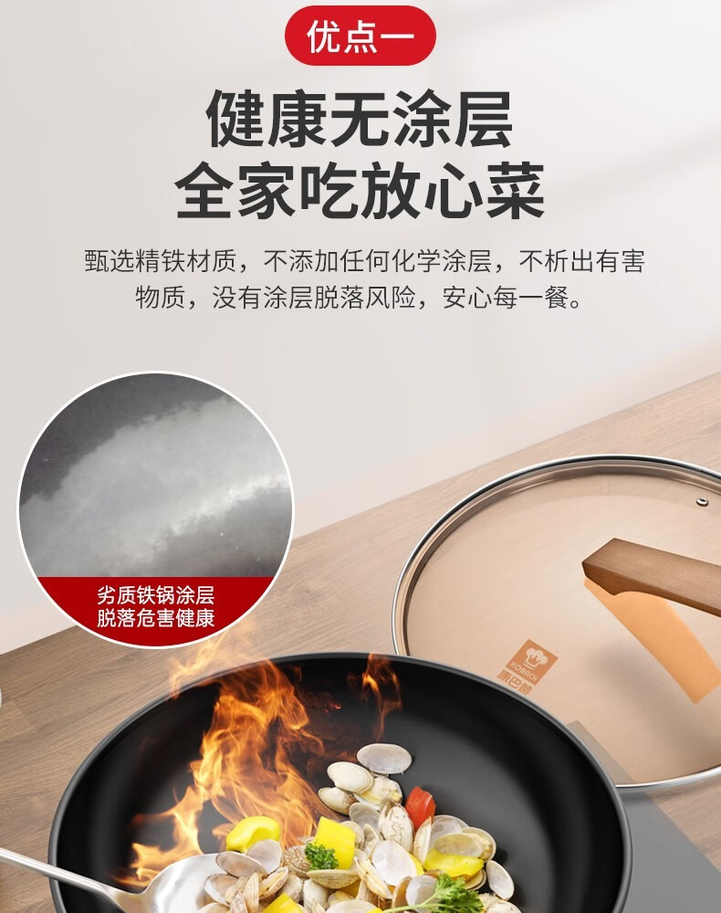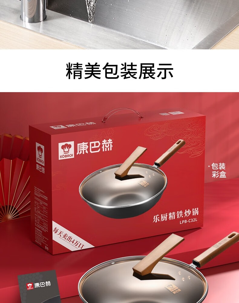 T-康巴赫 新款乐厨32cm无涂层精铁炒锅家用平底电磁炉明火通用炒菜锅铁锅 精美礼盒装带锅盖 老款LPB-C32L 新款LPB-C32LA 新款