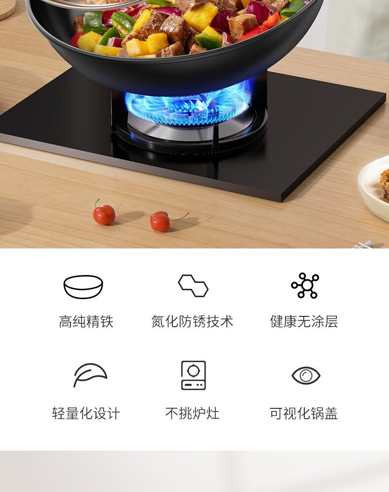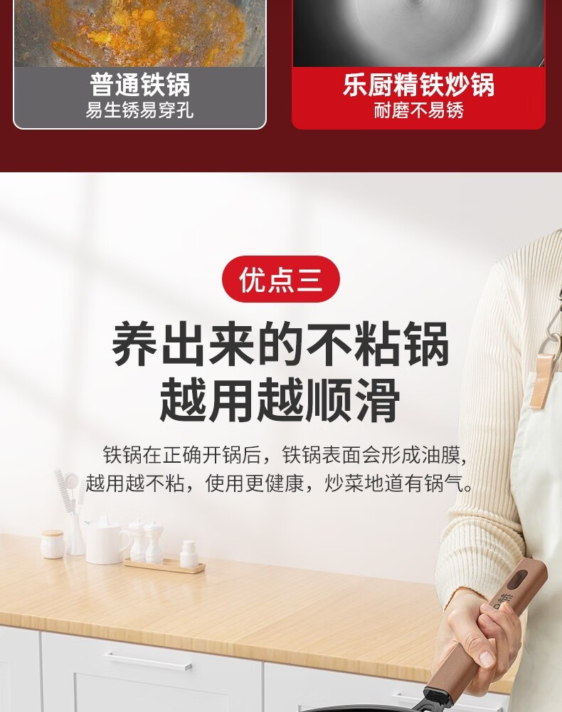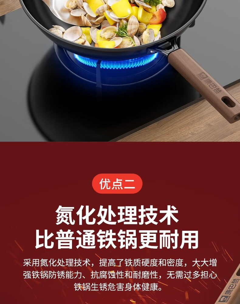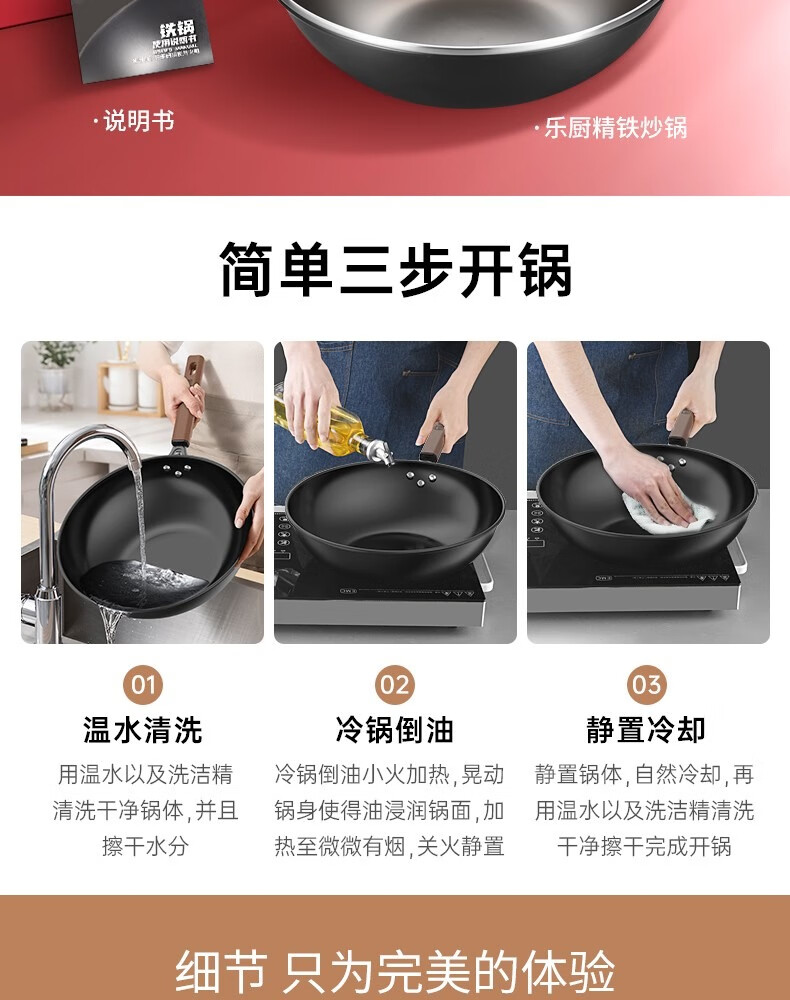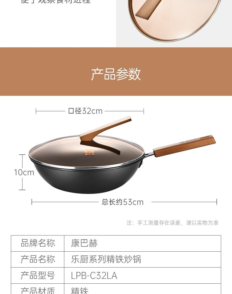 商品名称:T-康巴赫 新款乐厨32cm无涂层精铁炒锅家用平底电磁炉明火通用炒菜锅铁锅 精美礼盒装带锅盖 老款LPB-C32L 新款LPB-C32LA 新款