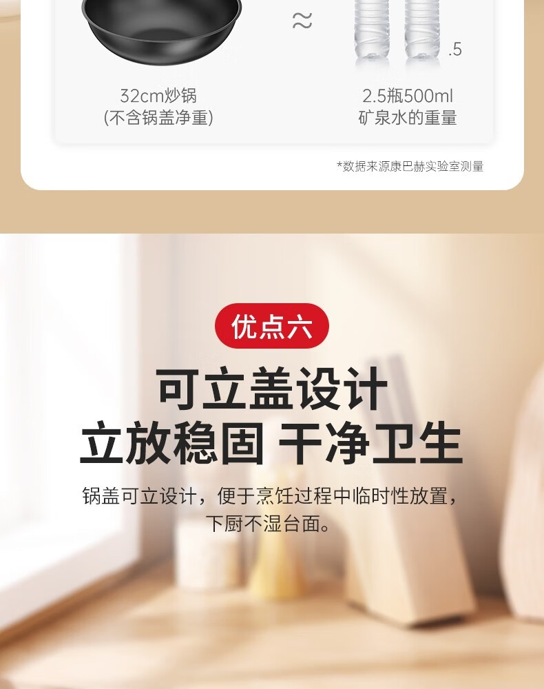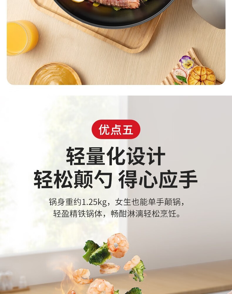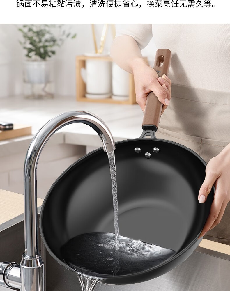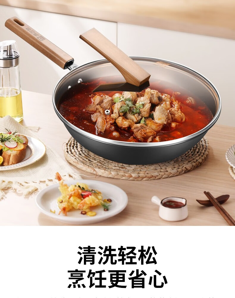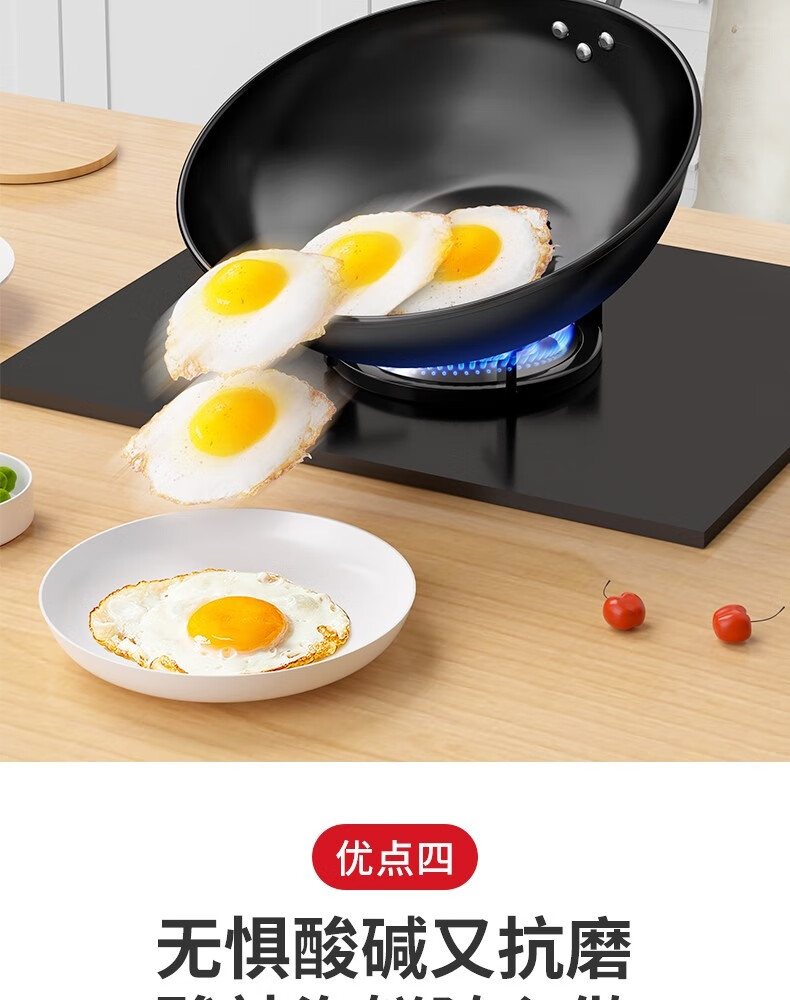 商品名称:T-康巴赫 新款乐厨32cm无涂层精铁炒锅家用平底电磁炉明火通用炒菜锅铁锅 精美礼盒装带锅盖 老款LPB-C32L 新款LPB-C32LA 新款