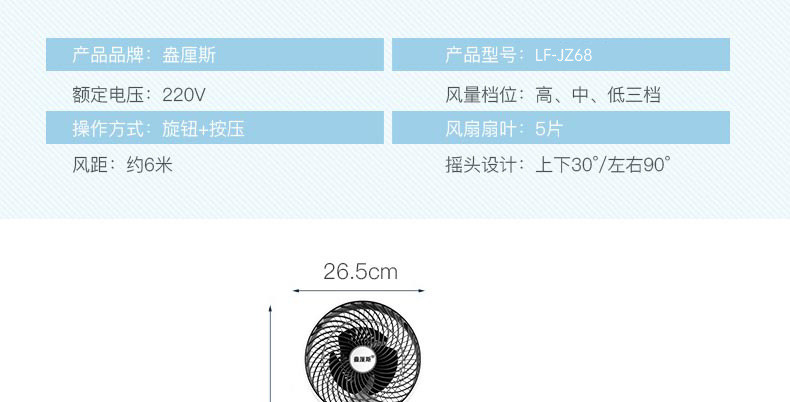商品名称:T-盎厘斯电风扇落地扇家用台立两用大风量摇头扇宿舍电扇LF-JZ68(原型号ALS-616)