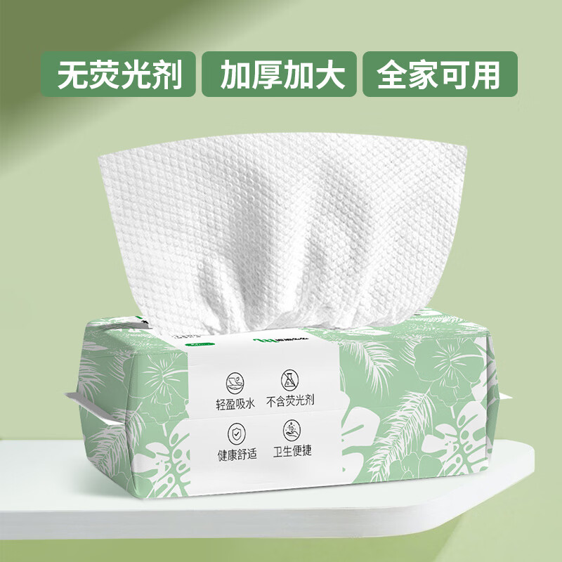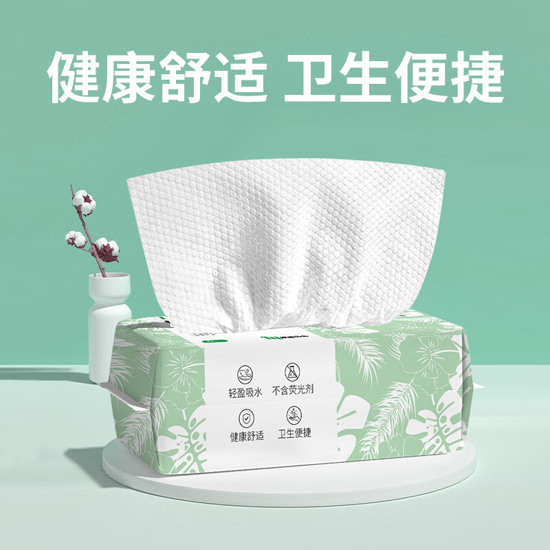 J-趣趣么么洗脸巾一次性洗脸巾棉柔巾擦脸巾洁面巾 加厚装珍珠纹亲肤舒适干湿两用 加大超值装 居家差旅全家可用【50抽/包-绿色款】 趣趣么么50抽