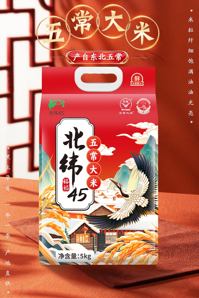 北纬45 五常福稻 五常大米 5kg 6972795891481 偏远地区另算运费