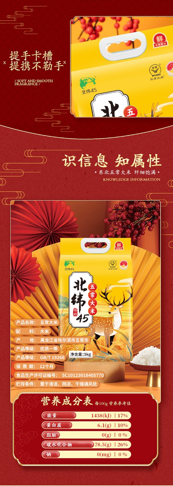 商品名称:北纬45 五常禧稻 五常大米 5kg 6972795891498 偏远地区另算运费