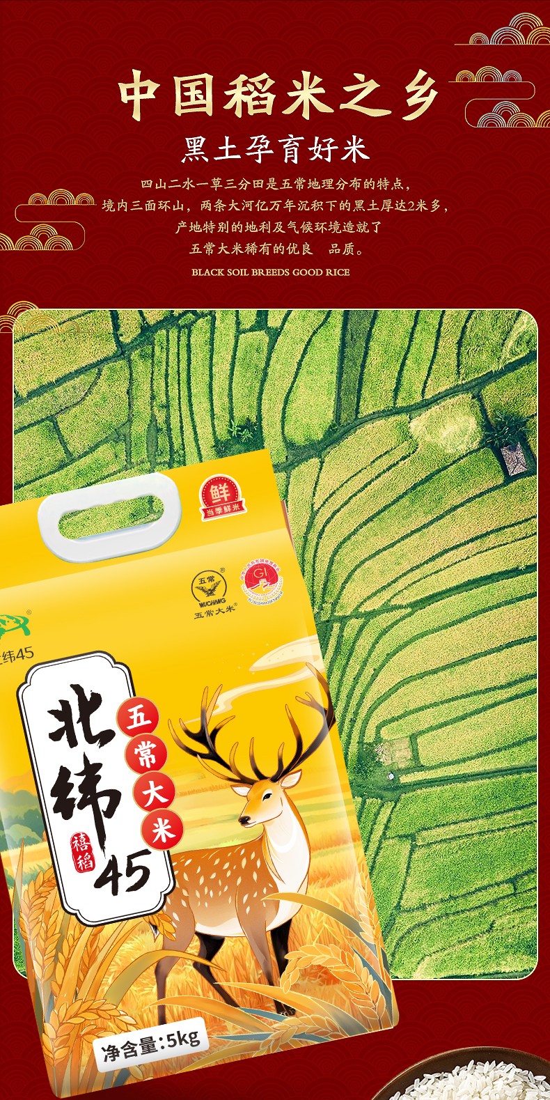 北纬45 五常禧稻 五常大米 5kg 6972795891498 偏远地区另算运费