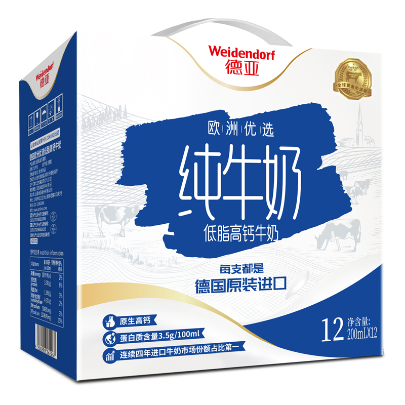 商品名称:德亚 高钙低脂纯牛奶200ml*12盒 礼盒装