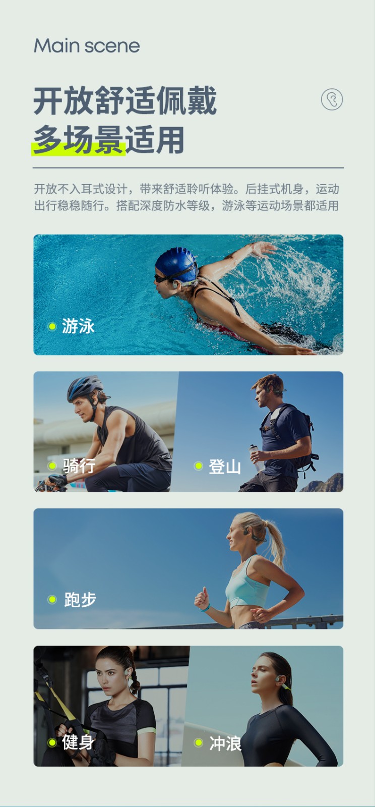 3.开放式骨传导设计,比传统耳机更舒适健康,兼顾环境音