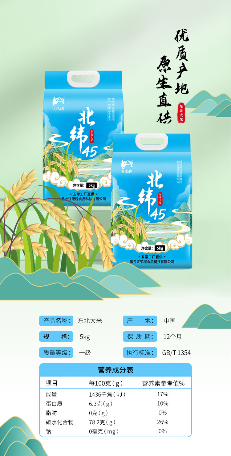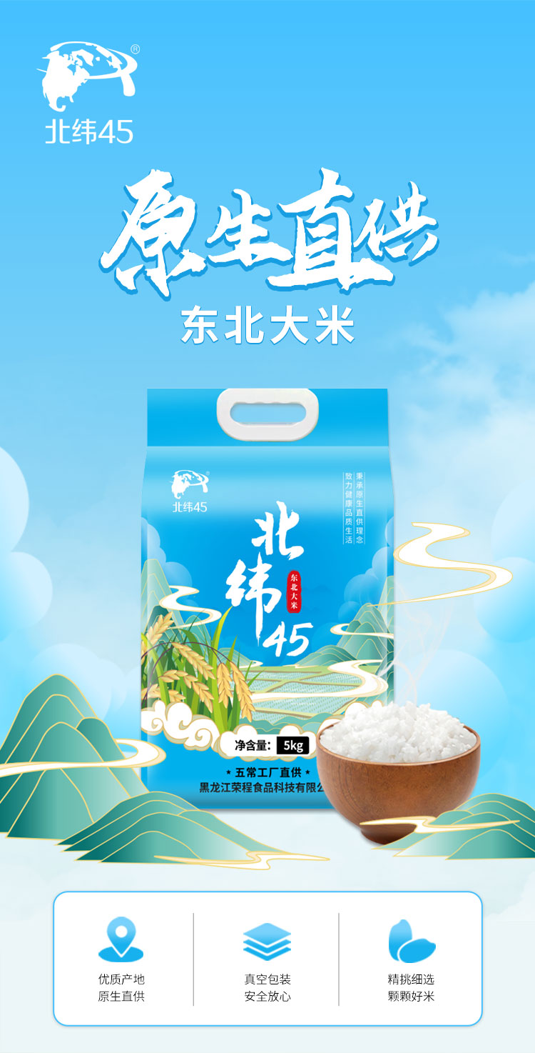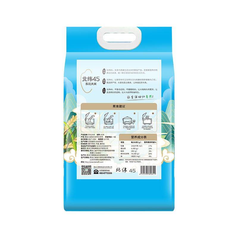 商品名称:北纬45 东北大米(蓝)5kg 6972795890811 偏远地区另算运费