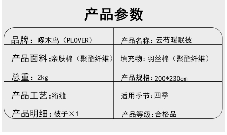 商品名称:啄木鸟(PLOVER)四季被-云芍暖眠被ZMN-DB014(200*230cm/4斤)6975502036670