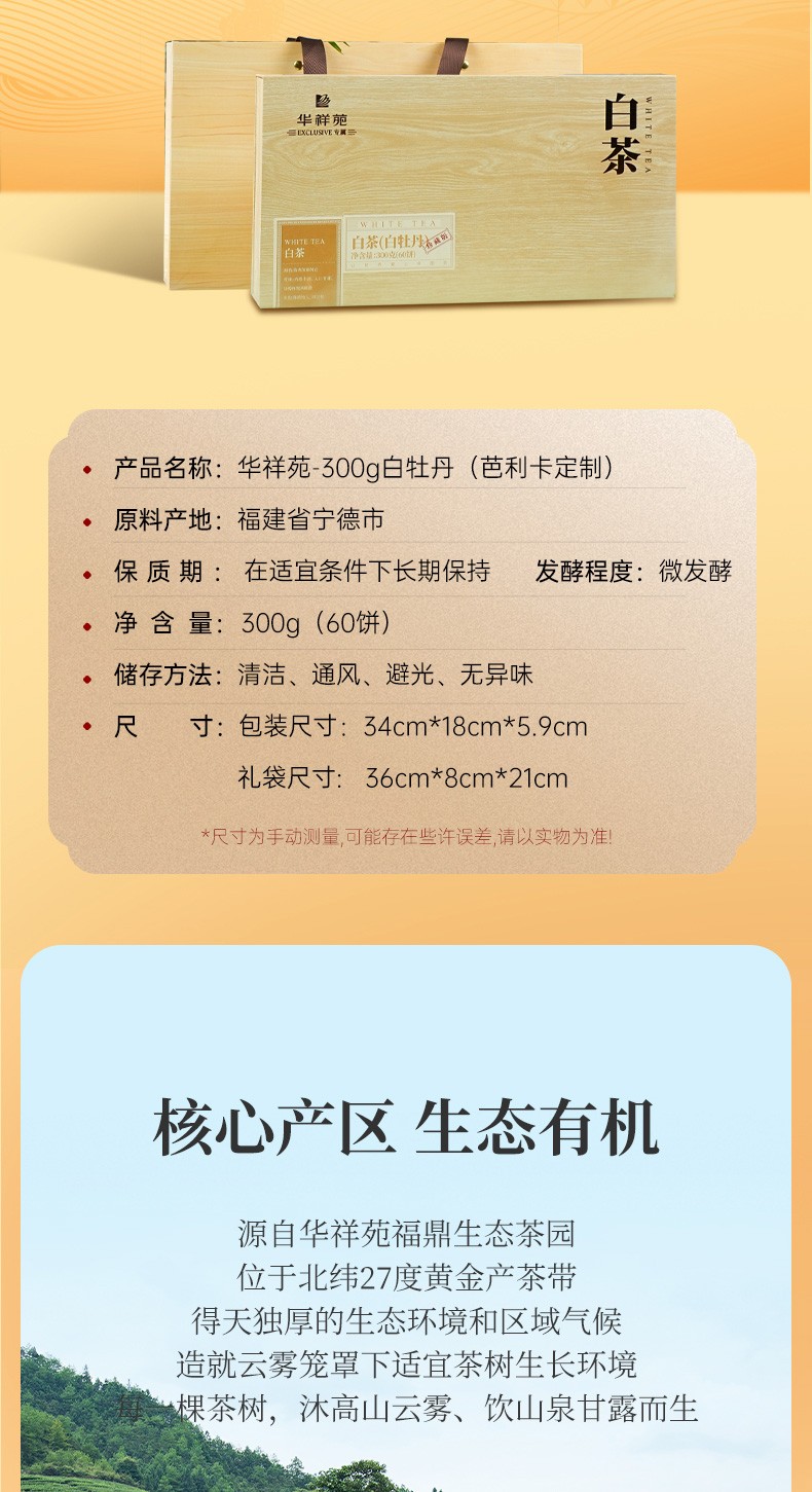 商品名称:华祥苑 福鼎白茶 白牡丹特级300g 6932841036761 偏远另加运费