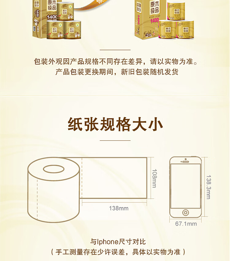 商品名称:清风原木金装4层140克/卷*10卷筒卫生纸B22AFJ3/51007258码6922266450327