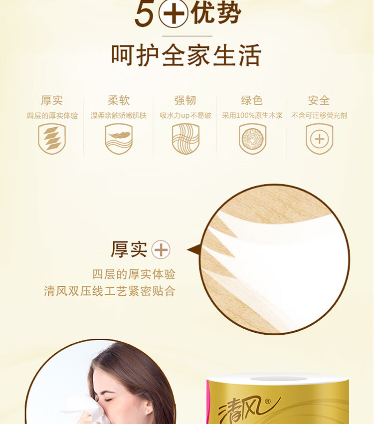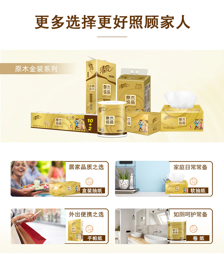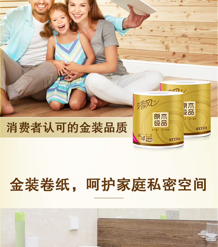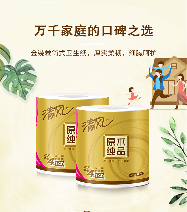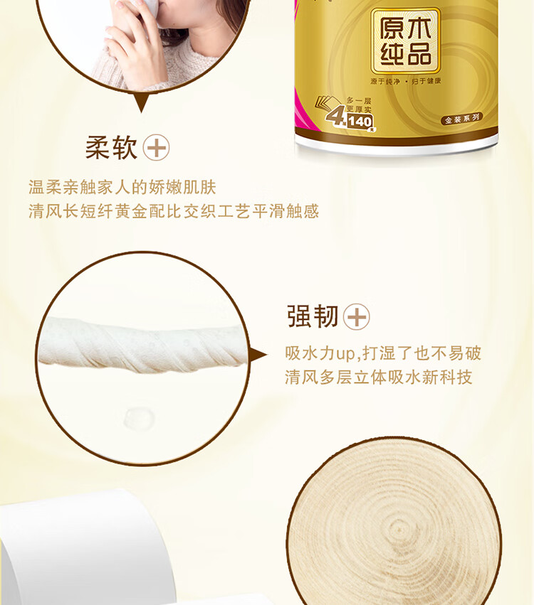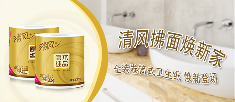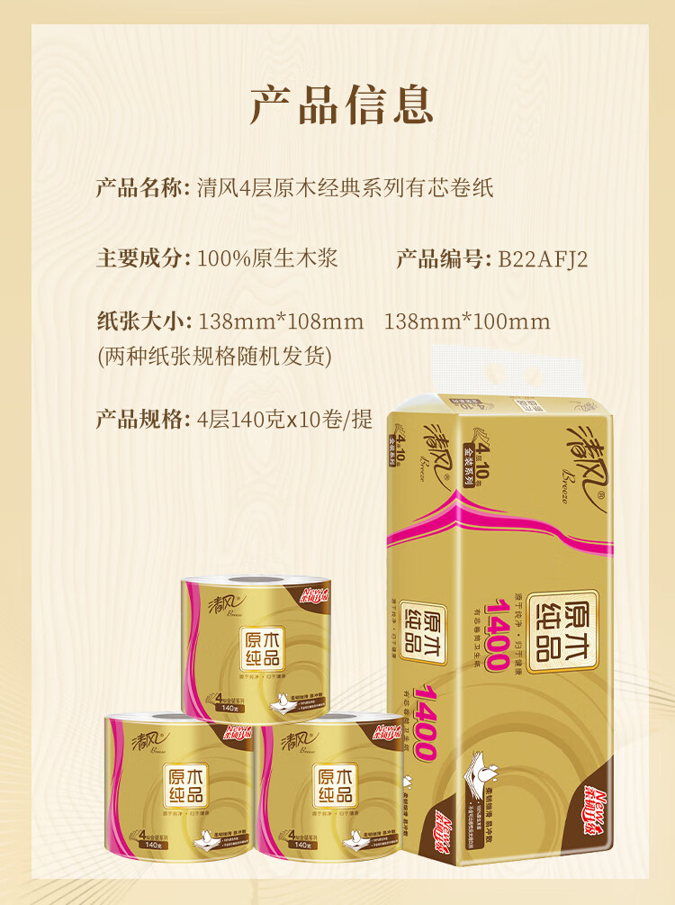 清风原木金装4层140克/卷*10卷筒卫生纸B22AFJ3/51007258码6922266450327