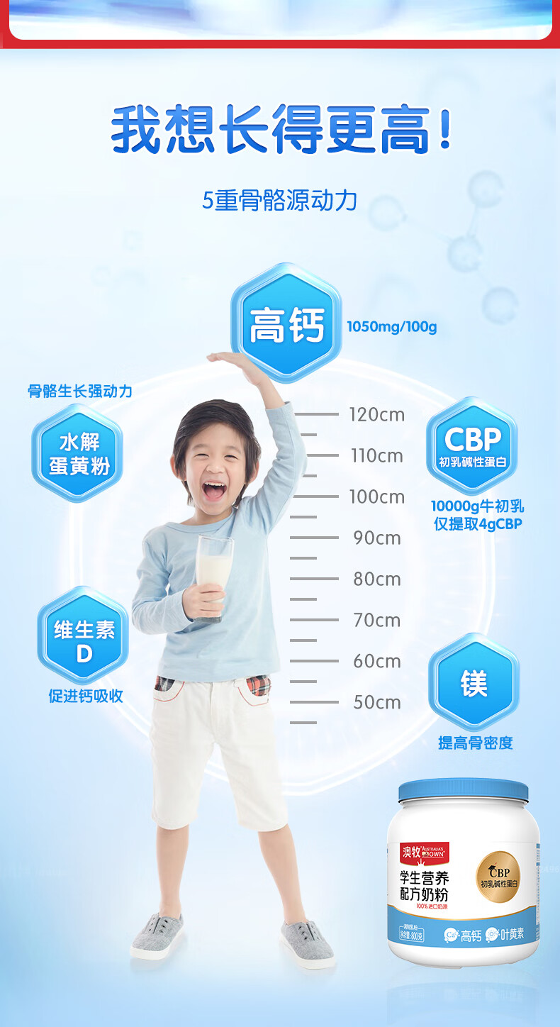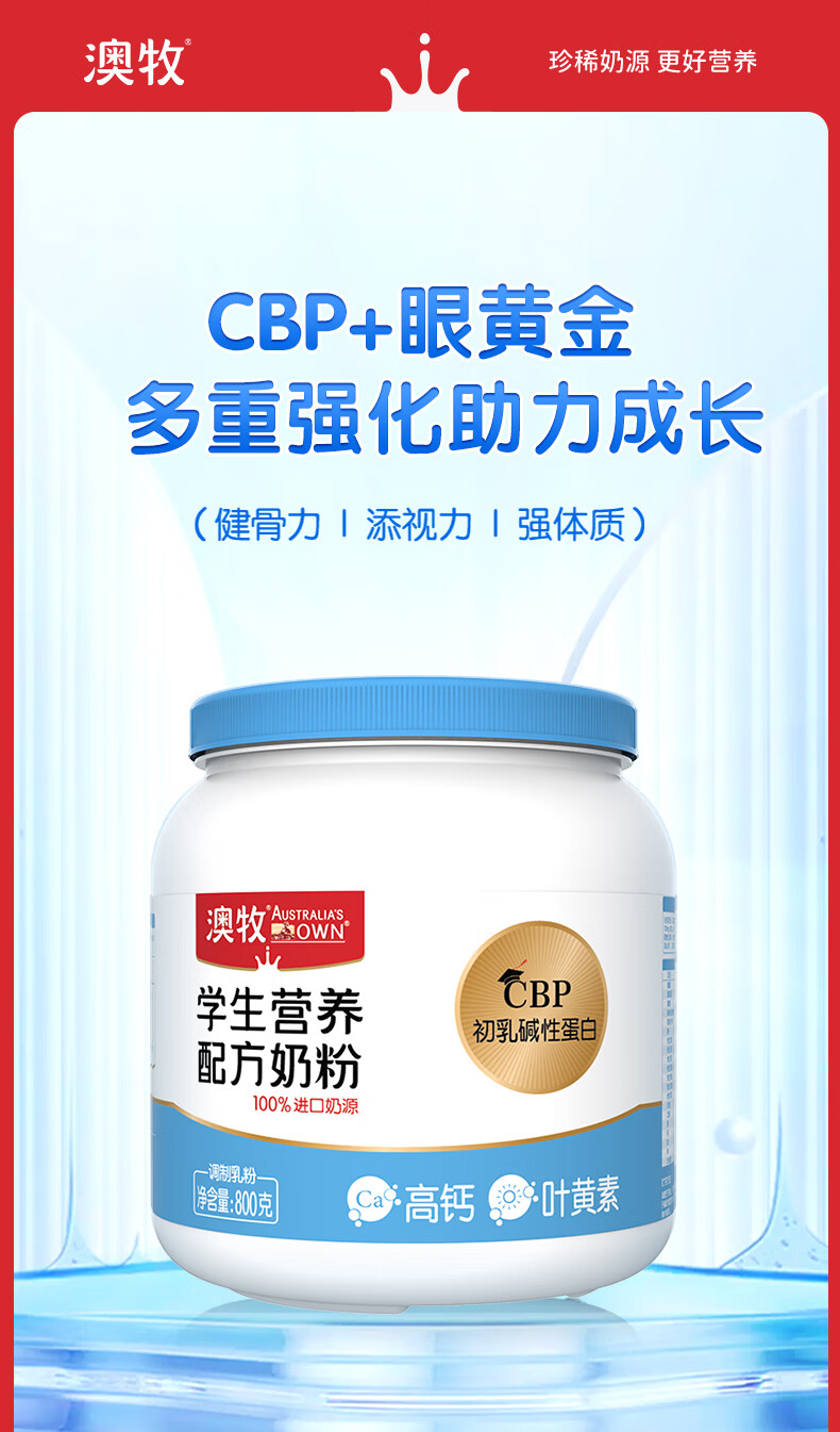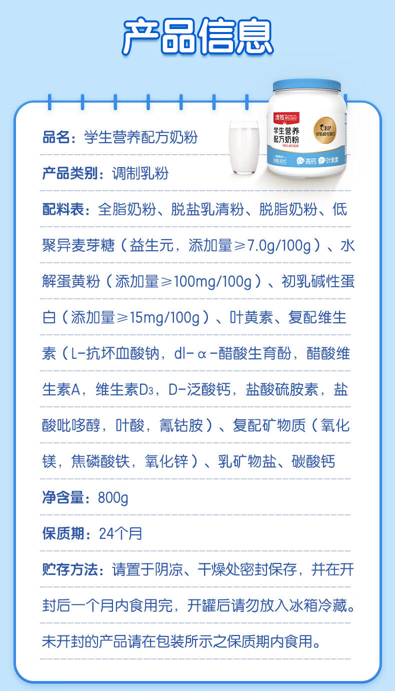 商品名称:澳牧学生营养奶粉*罐装 800g*1罐