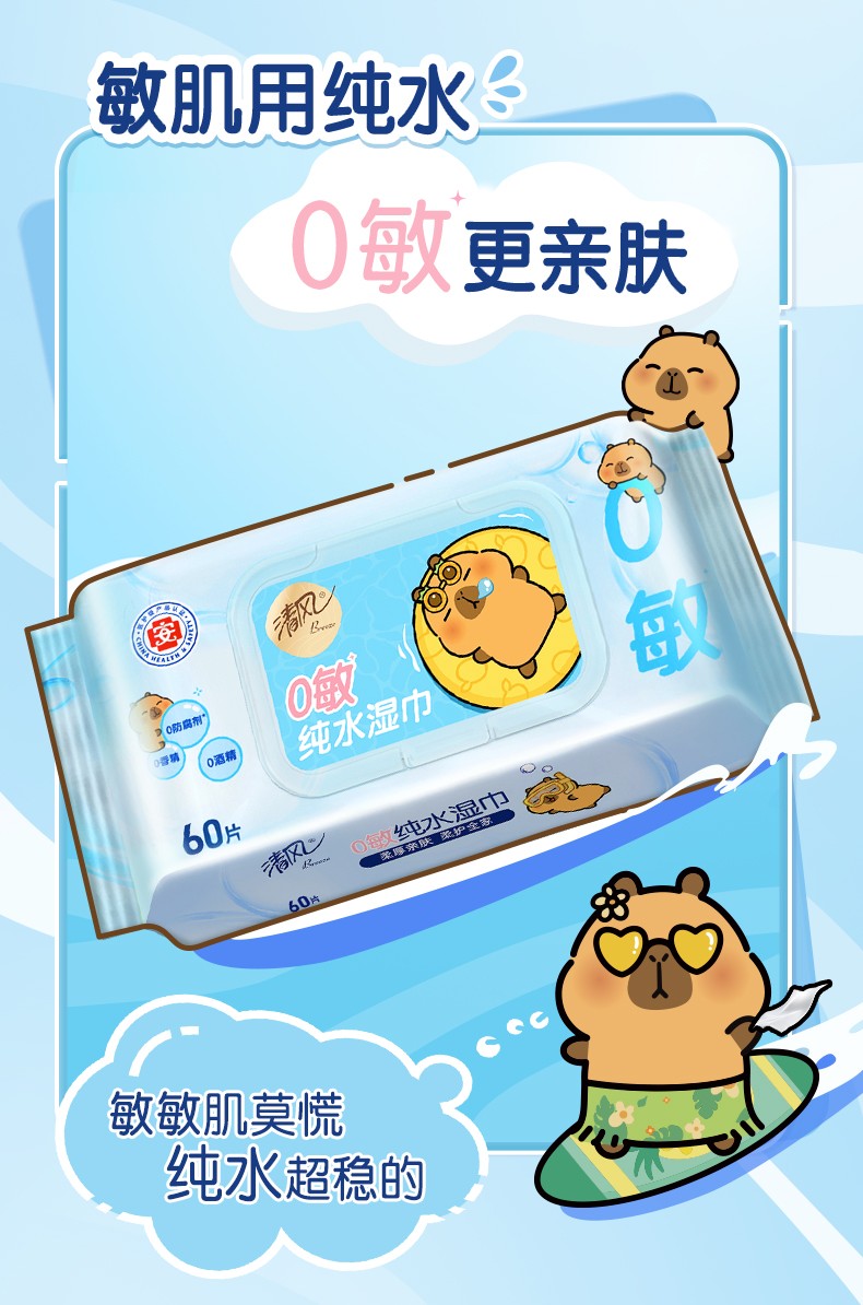 清风卡皮巴拉IP纯水1层60片/包*1*5湿纸巾BWB60CE2/51011483