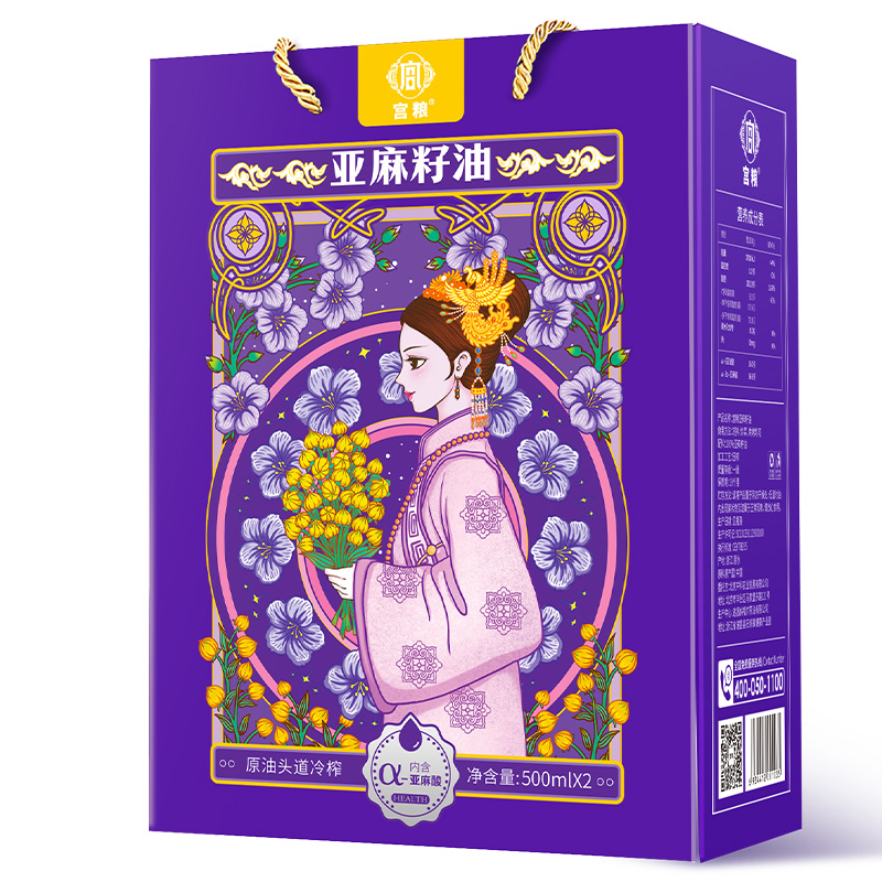 商品名称:宫粮亚麻籽油礼盒500ml*2瓶