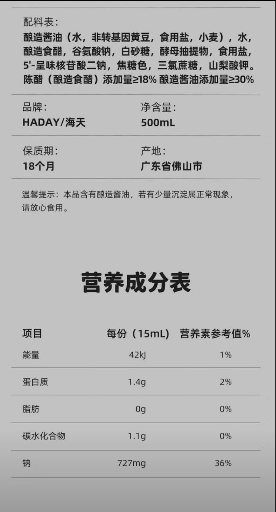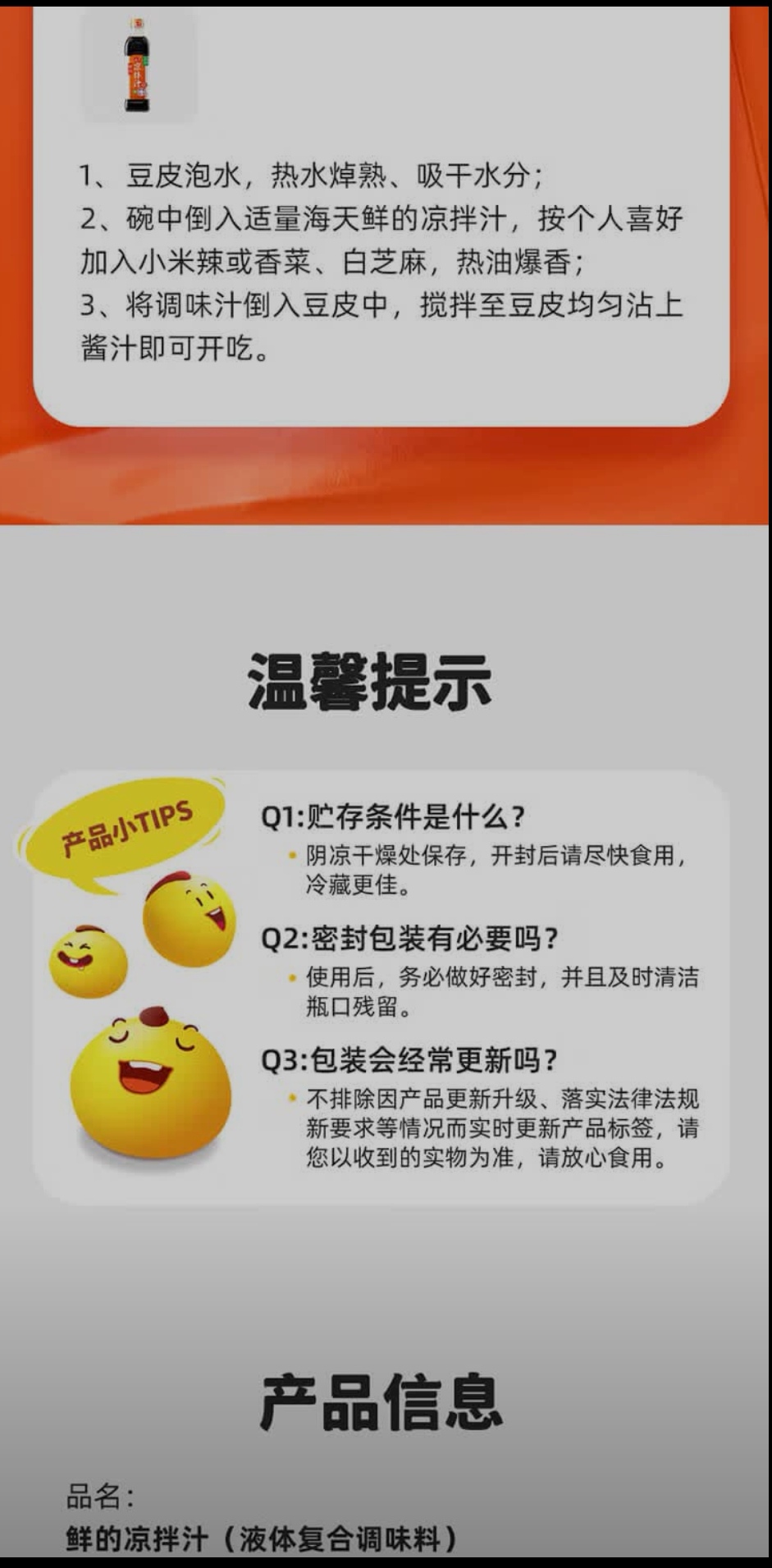 商品名称:海天鲜的凉拌汁500mL(PET方瓶)*3