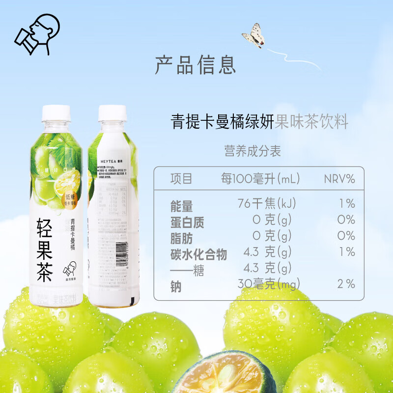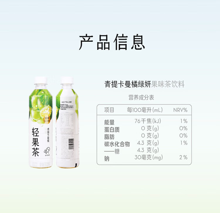 商品名称:喜茶青提卡曼橘绿研果味茶450ML*15瓶