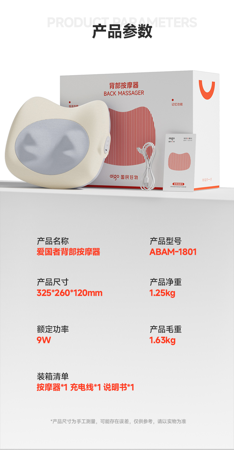 商品名称:爱国者 腰部背部按摩器 ABAM-1801 6978474990537 偏远加运费