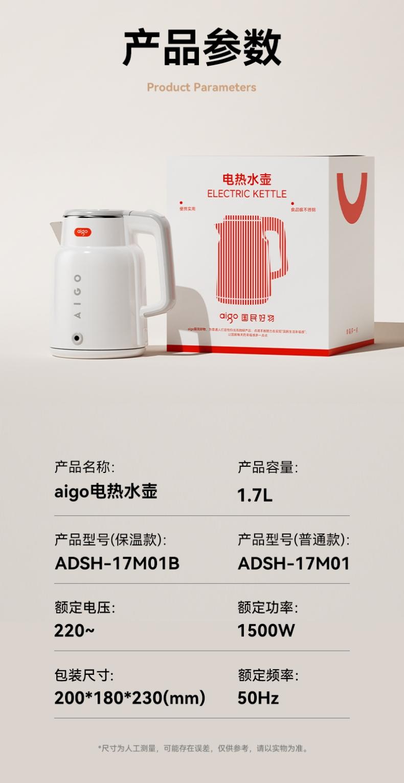 商品名称:爱国者 1.7L电热水壶 ADSH-17M01 6978474990490 偏远加运费