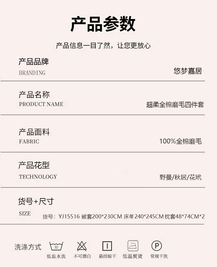 商品名称:悠梦嘉居YJ15516超柔全棉磨毛四件套 3500克 200*230CM 野曼 偏远另加运费