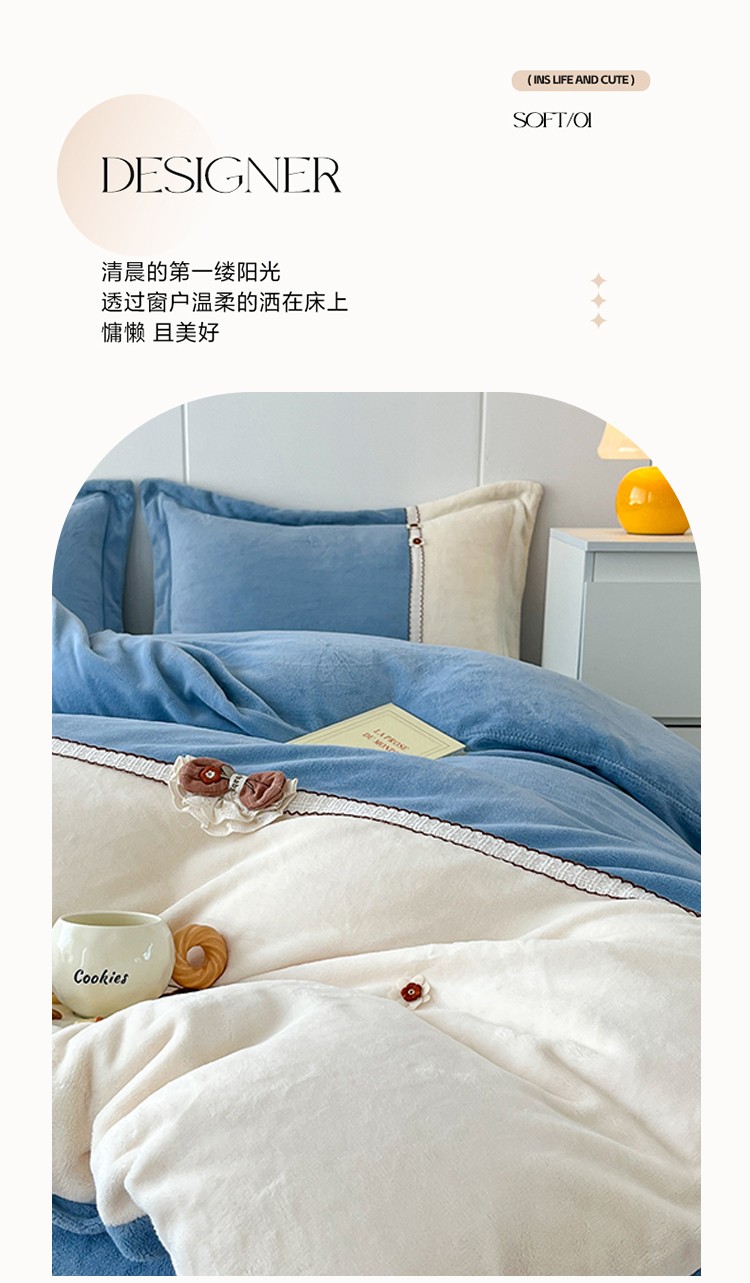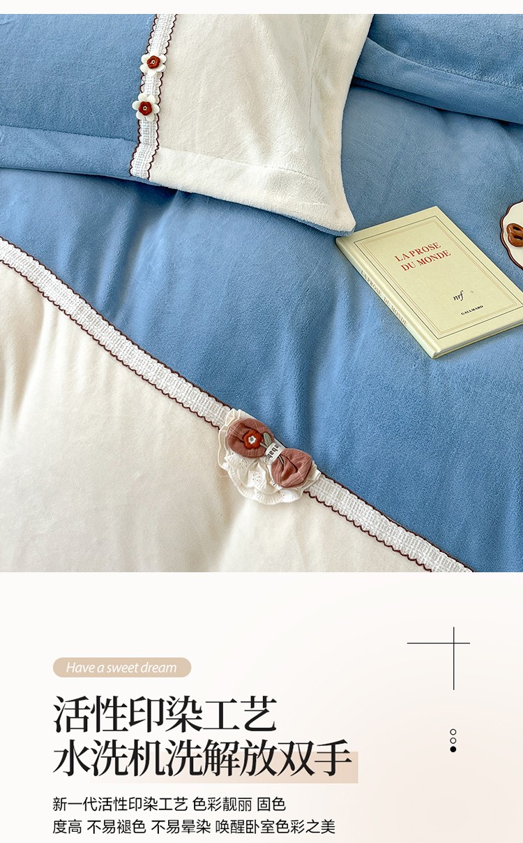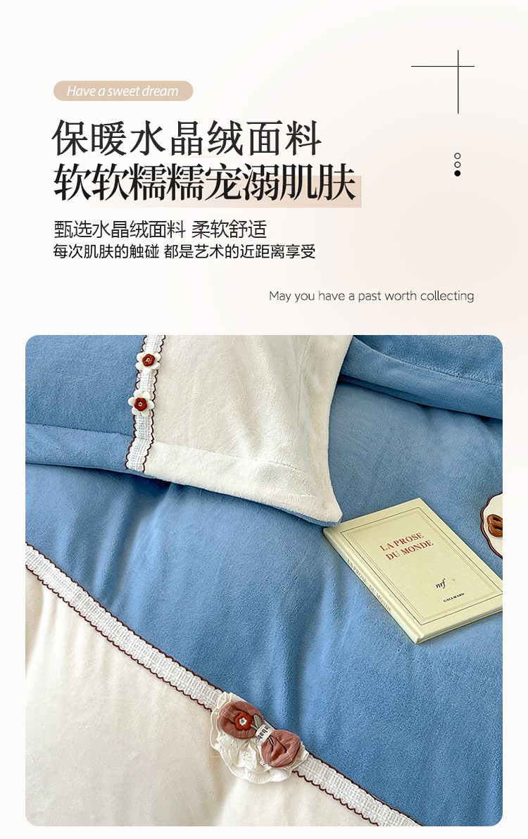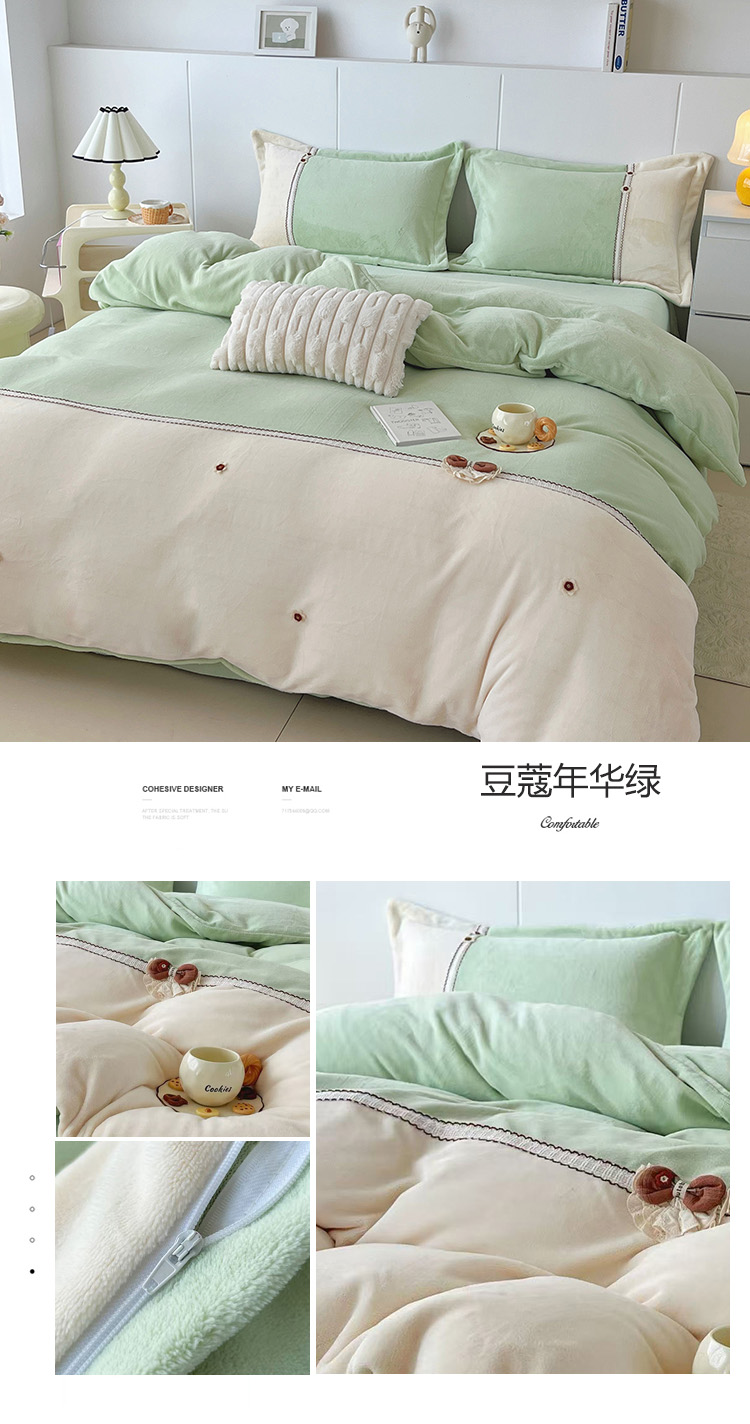 悠梦嘉居 YJ-15561豆蔻年华水晶绒四件套4500克 200*230CM 豆蔻年华粉 、新疆、西藏、青海、宁夏、甘肃运费另算)